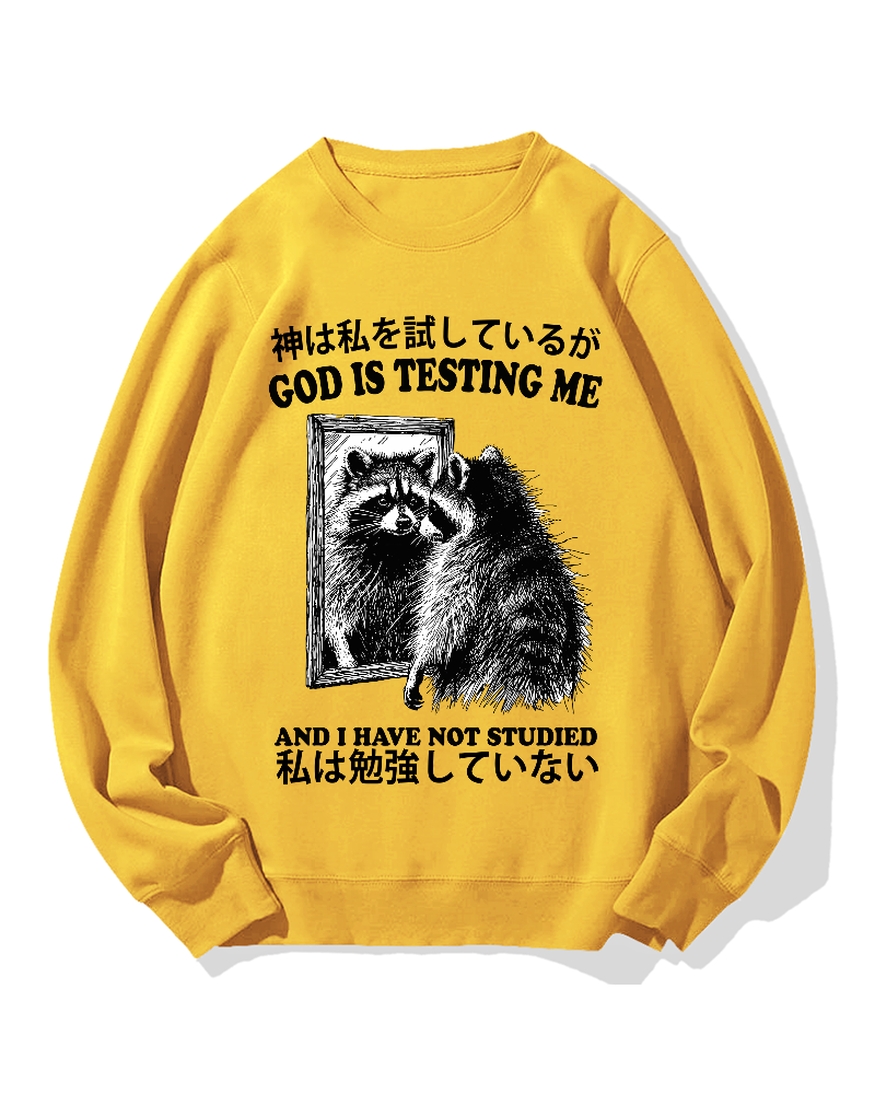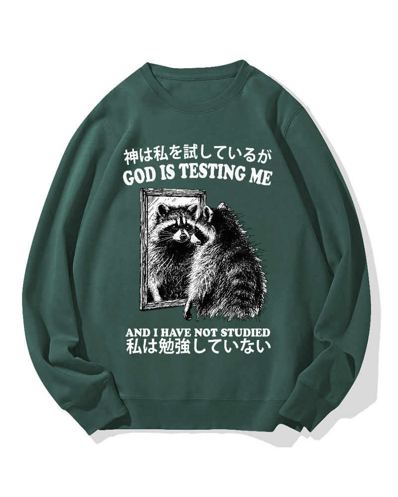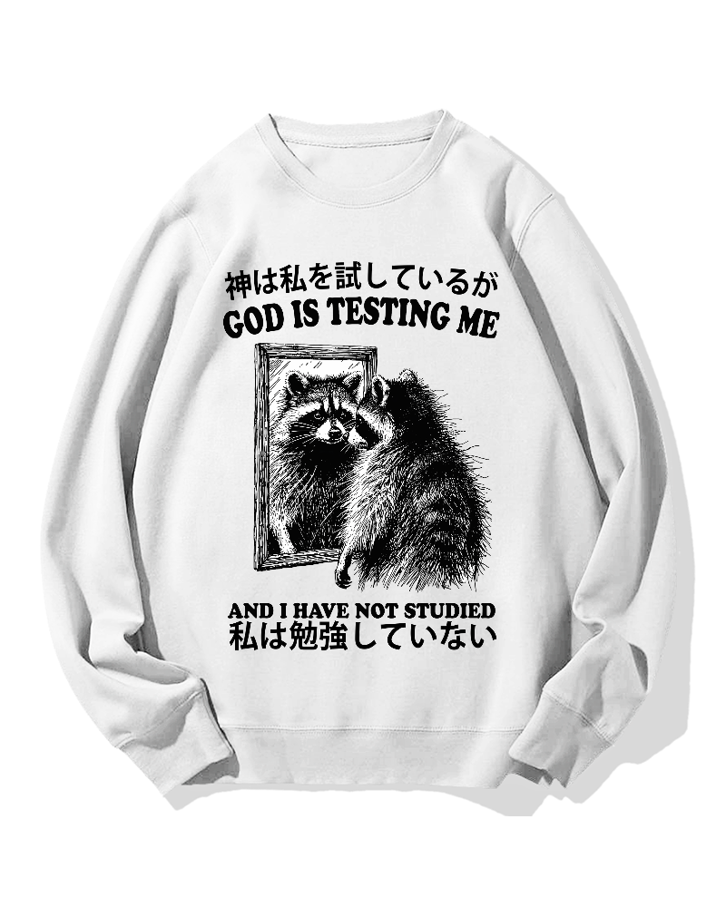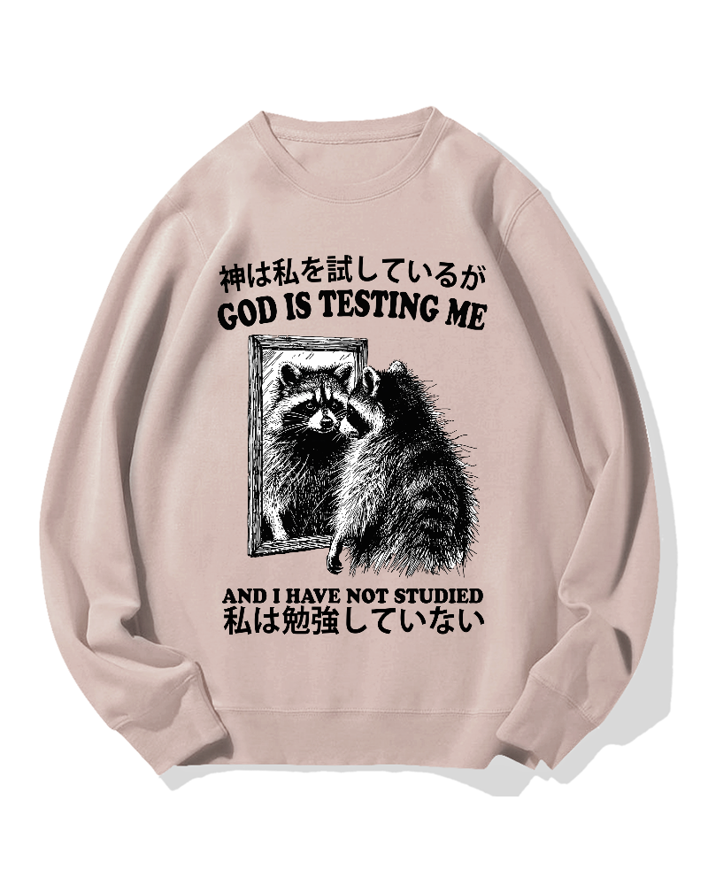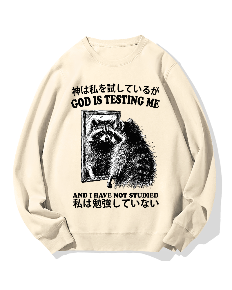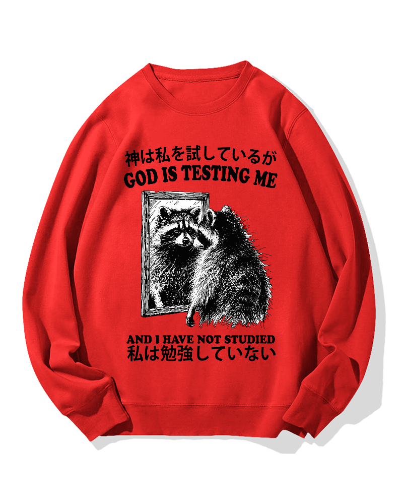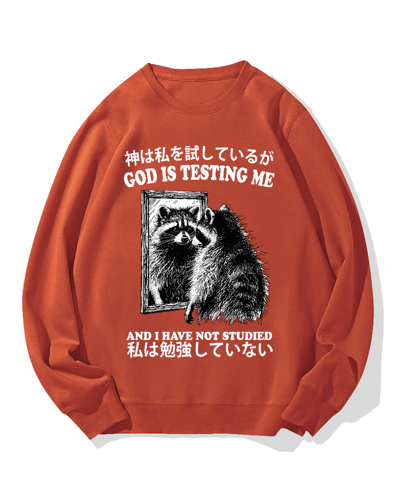 • God is testing me Raccoon Cotton Sweatshirt
