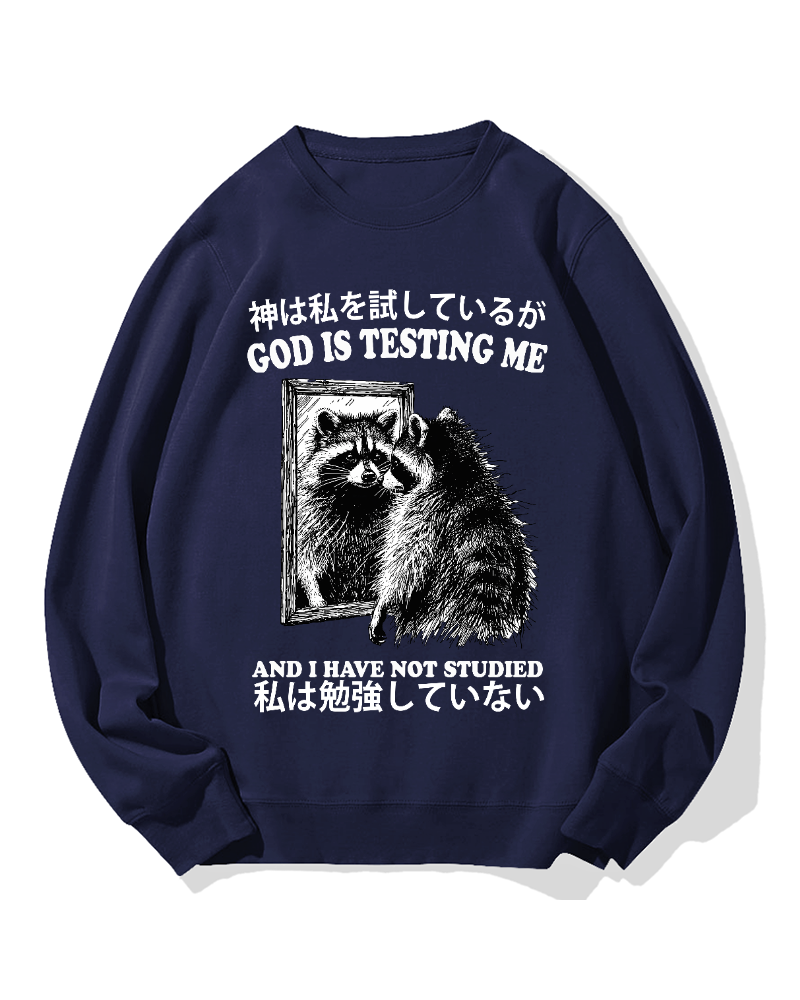 God is testing me Raccoon Cotton Sweatshirt
