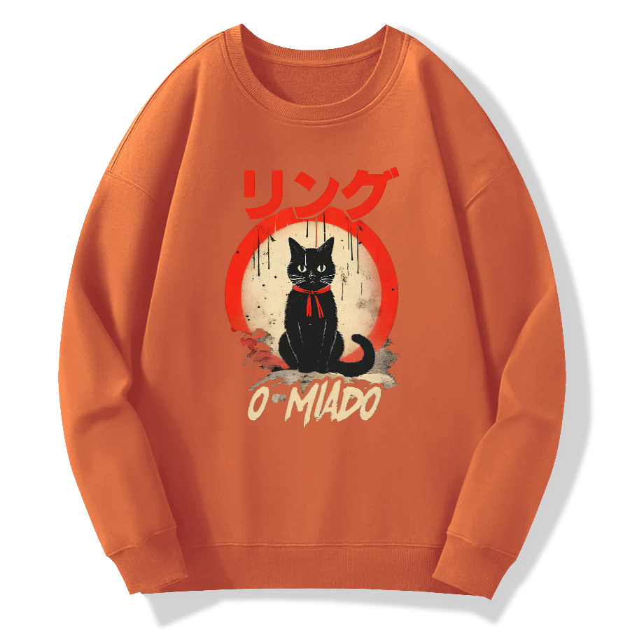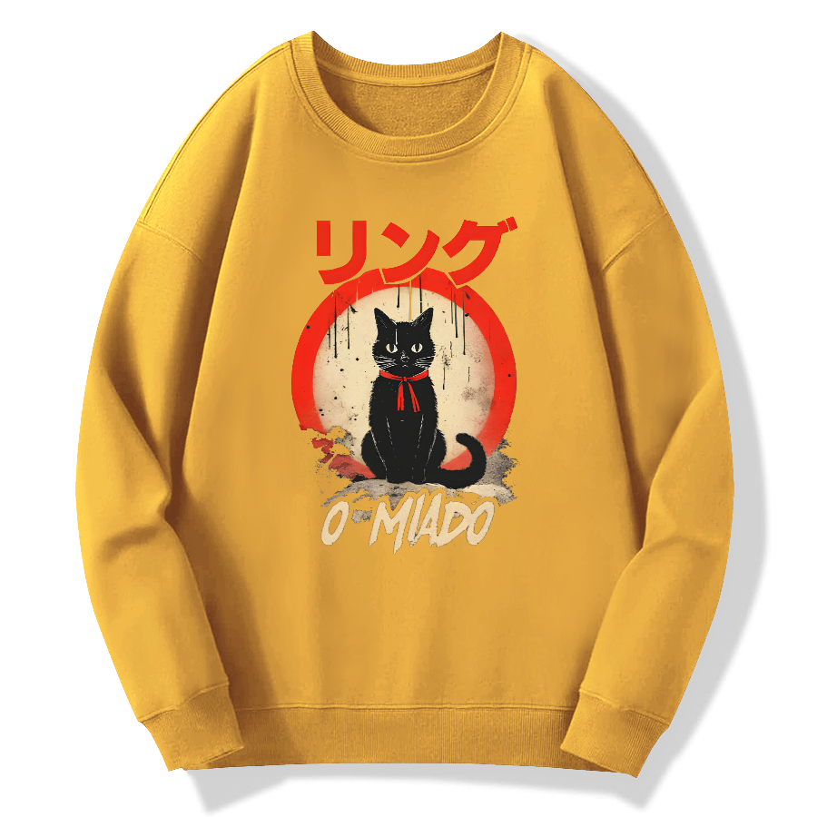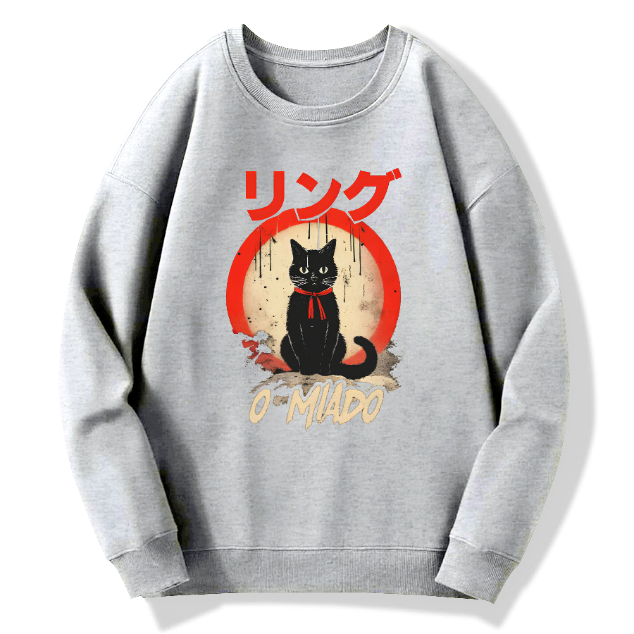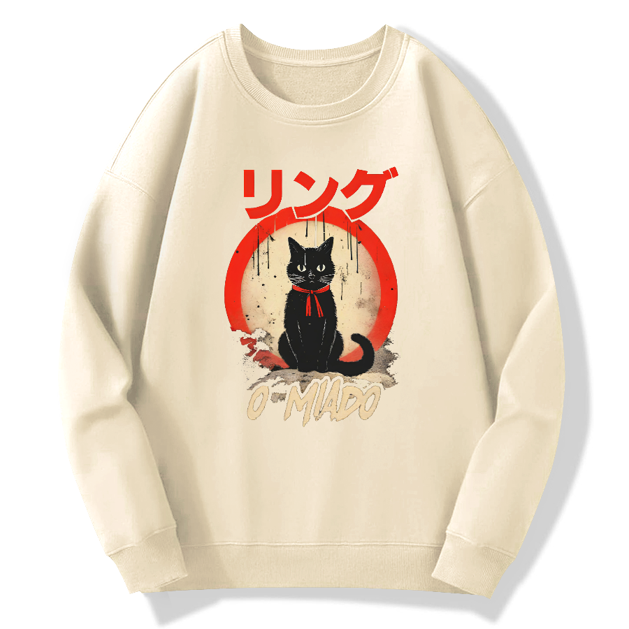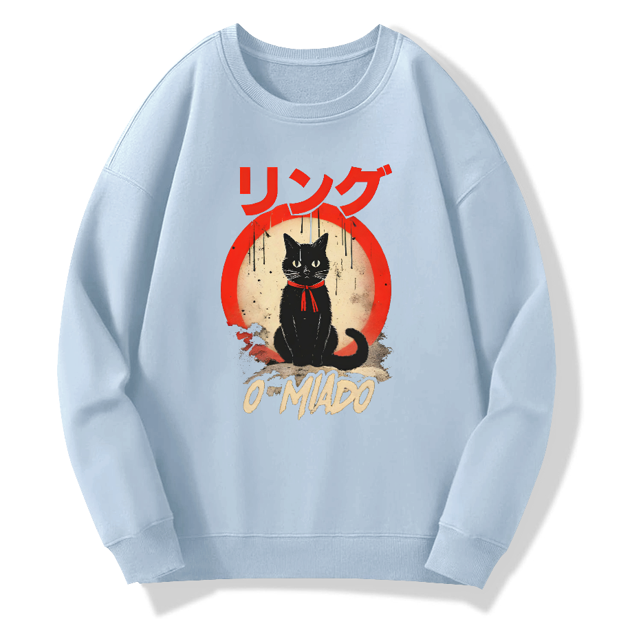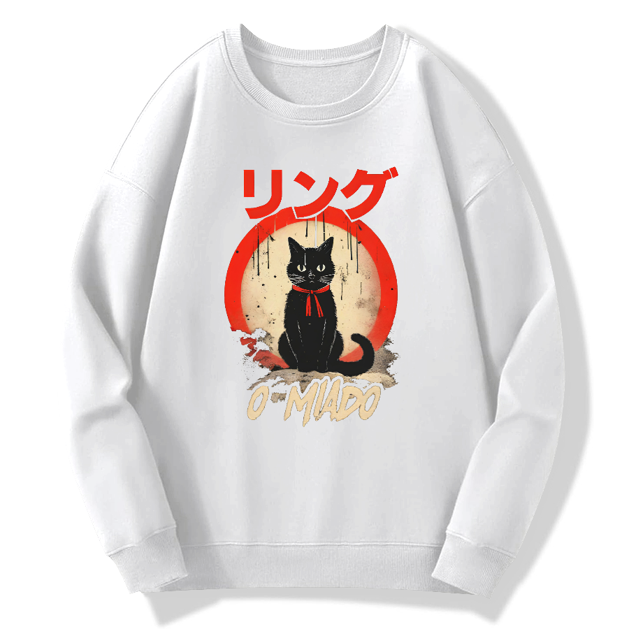 • Japanese Black Cat Retro Art Cotton Pullover Sweatshirt