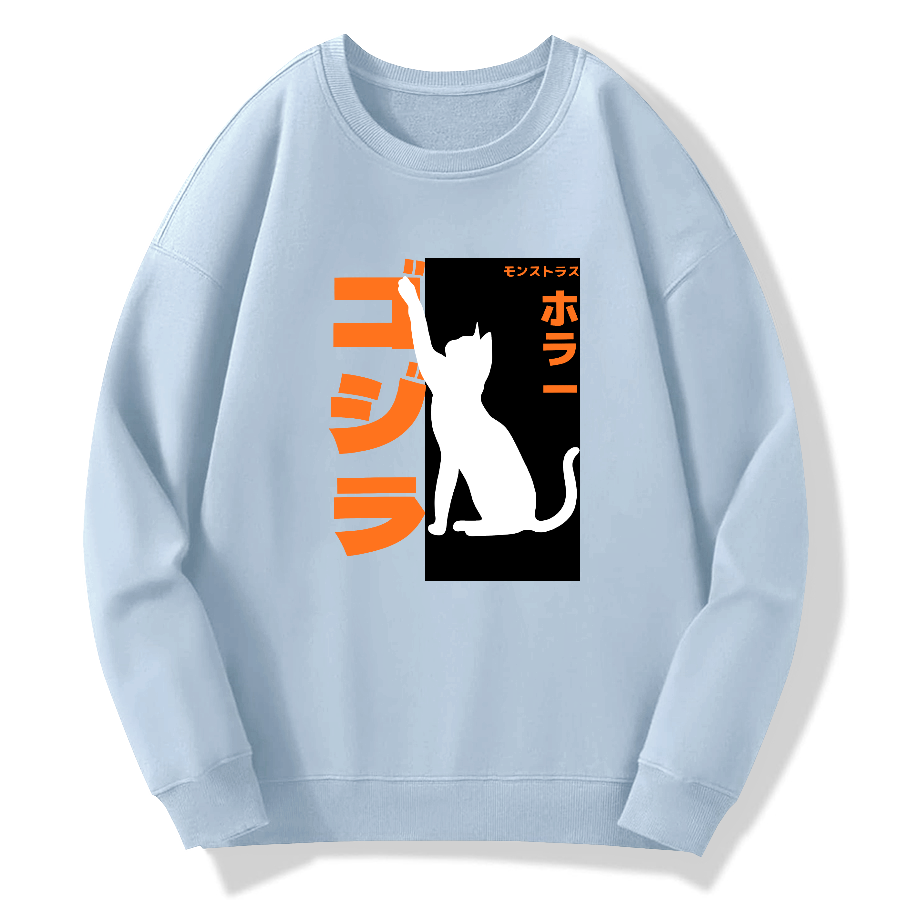 Japanese monster Catzilla invades Kaijus Cotton Pullover Sweatshirt