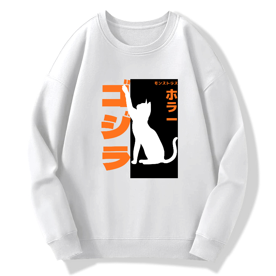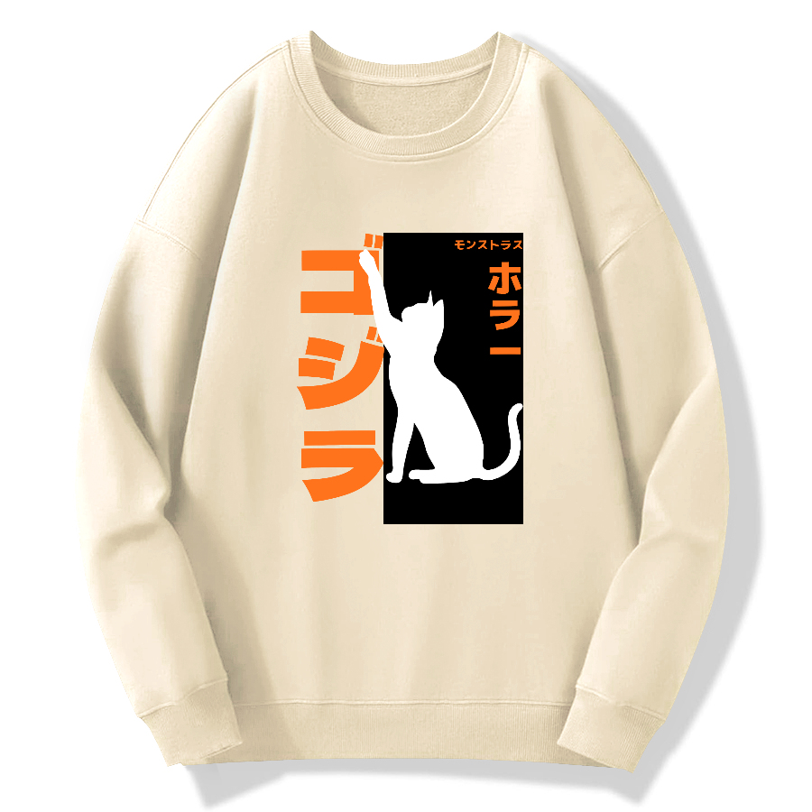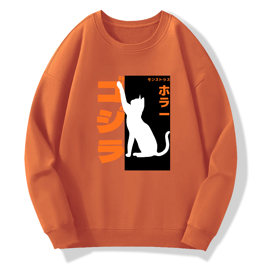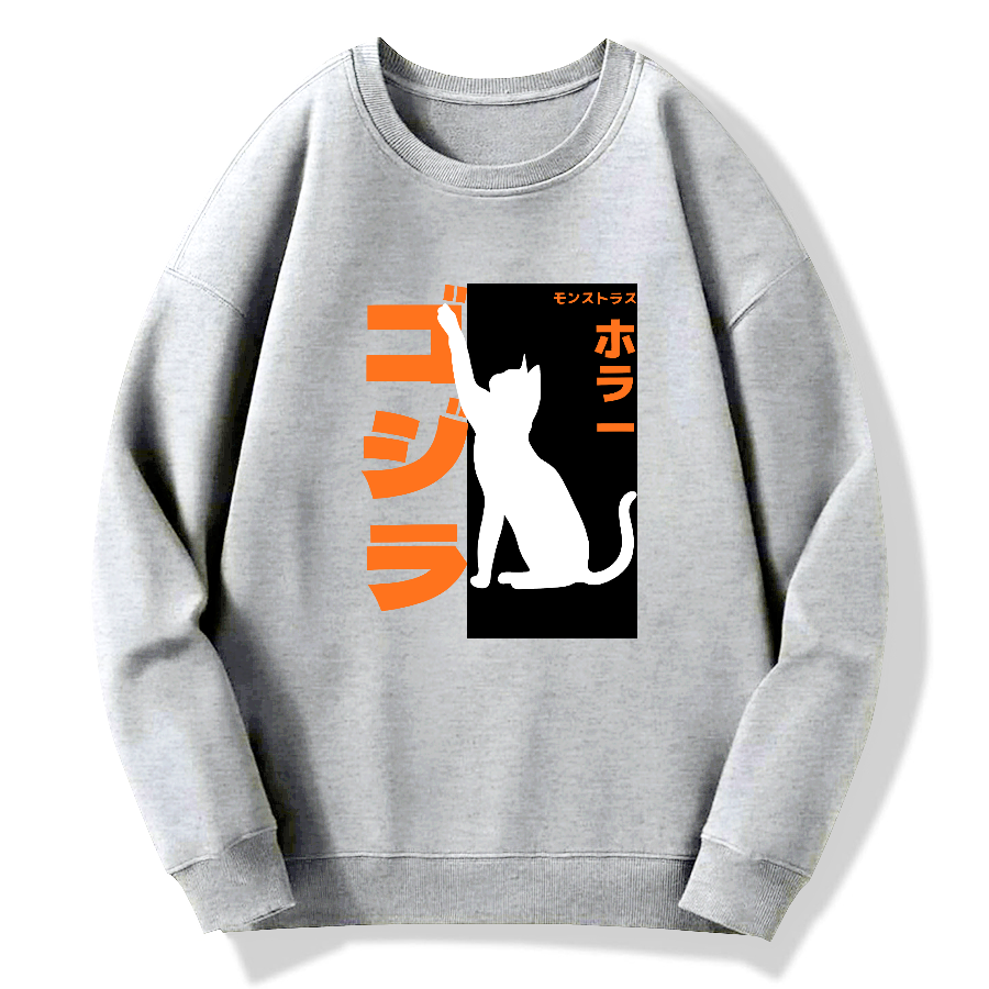 • Japanese monster Catzilla invades Kaijus Cotton Pullover Sweatshirt