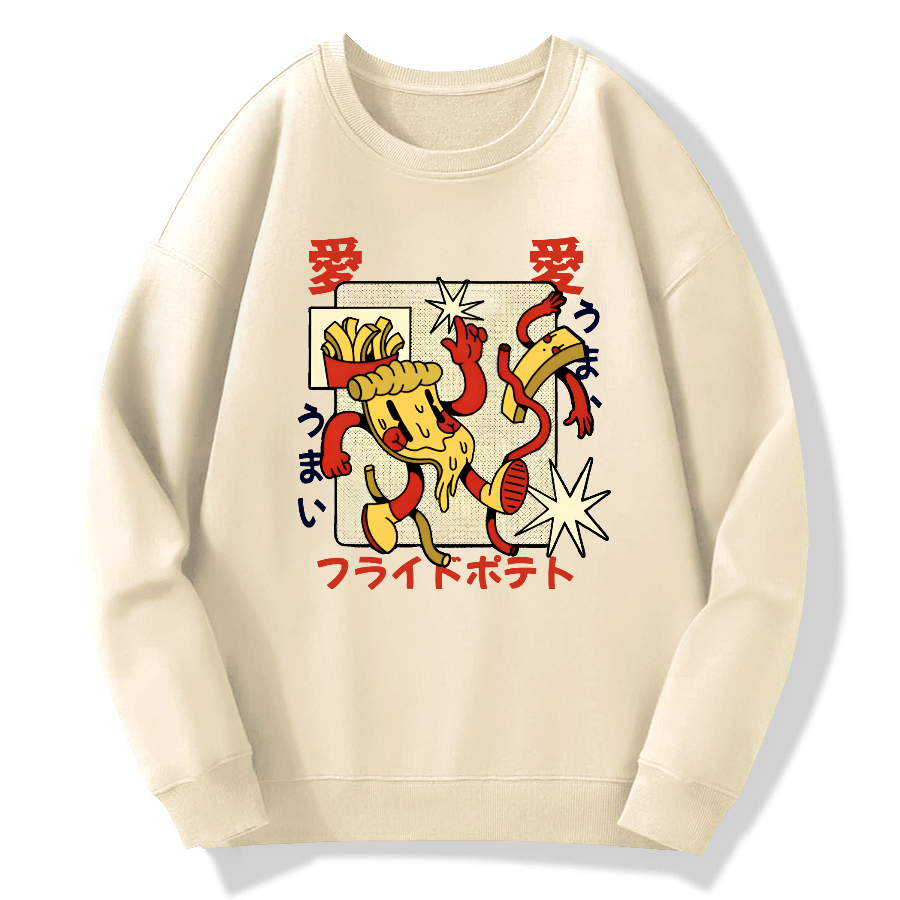 Pizza - Retro Japanese Cotton Pullover Sweatshirt