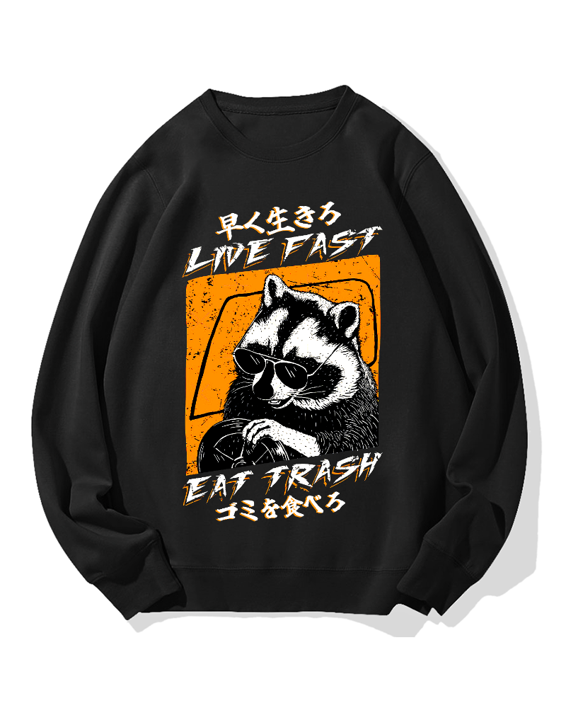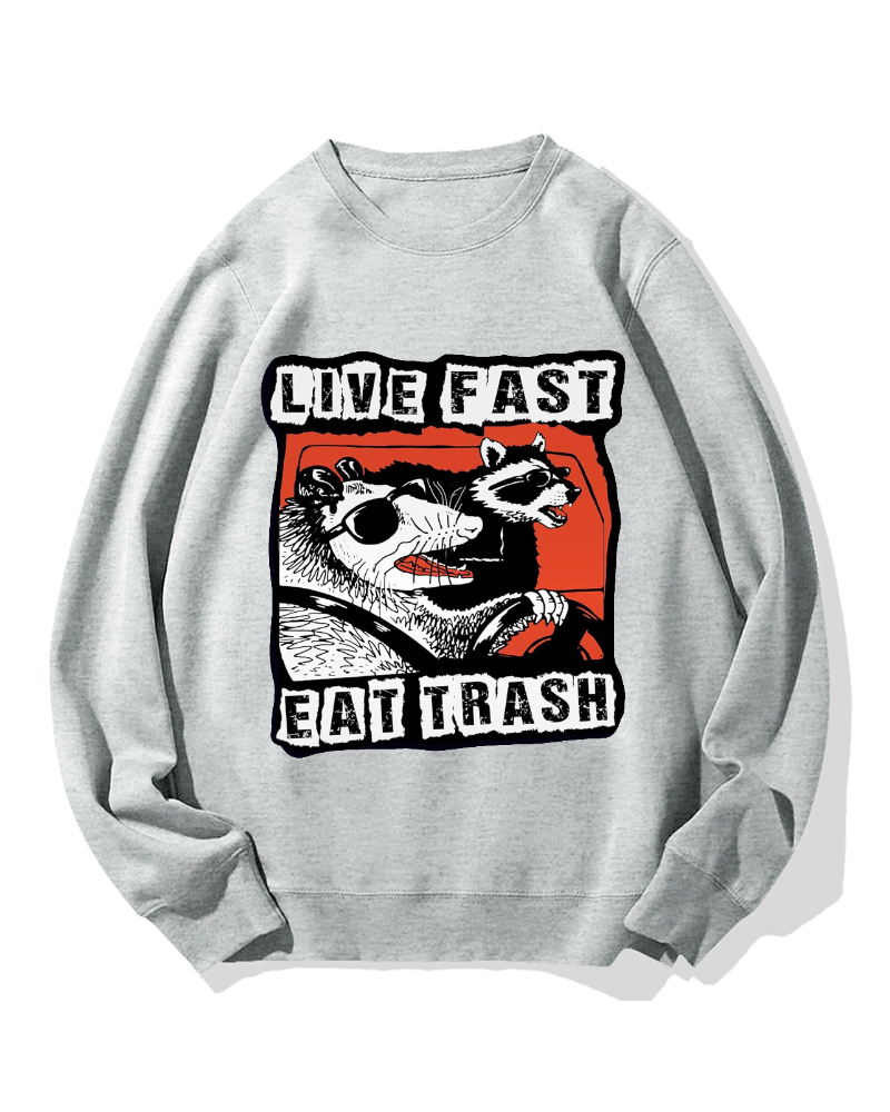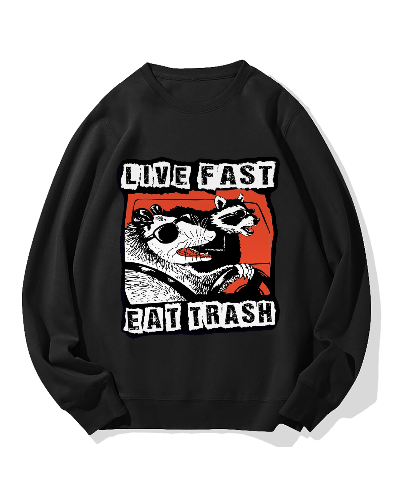 Raccoon Live Fast Eat Trash Cotton Sweatshirt
