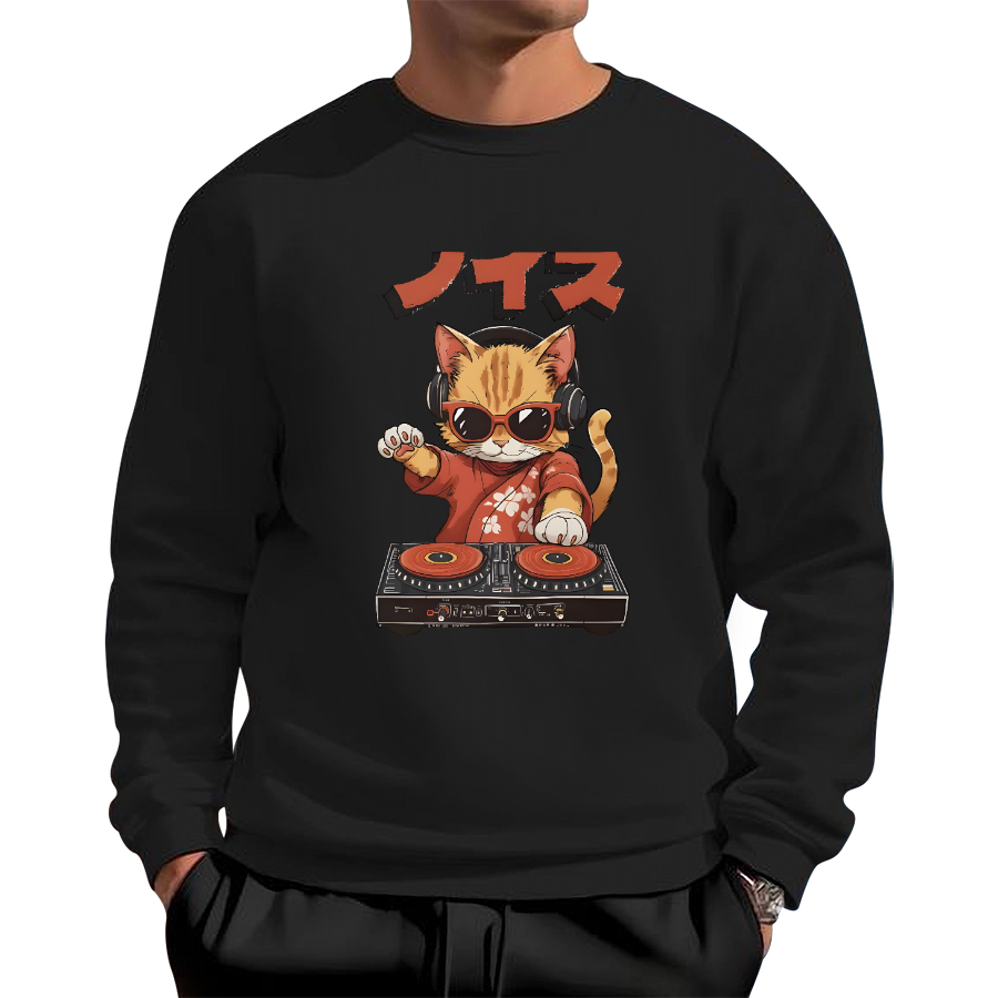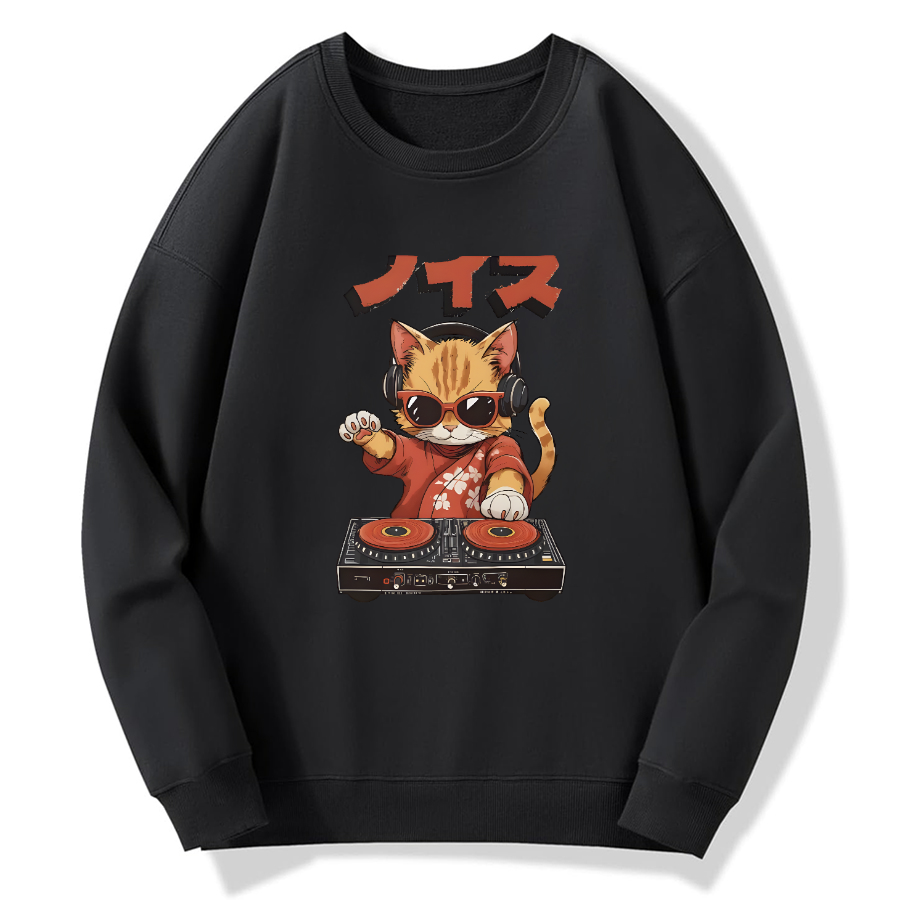 Cat who loves playing DJ retro Cotton Pullover Sweatshirt