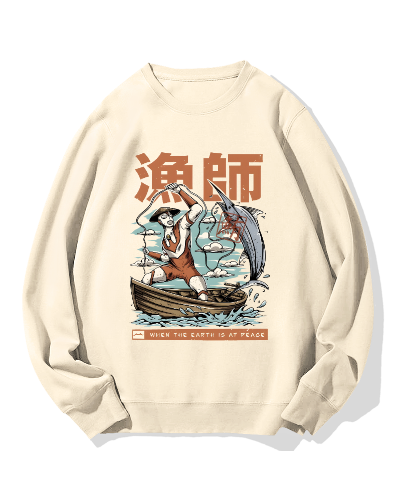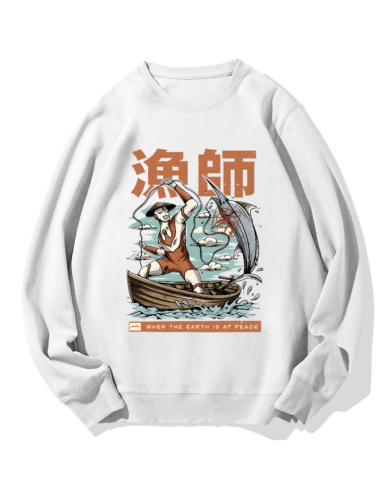 Kanagawa Retro Cotton Pullover Sweatshirt