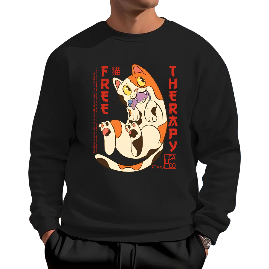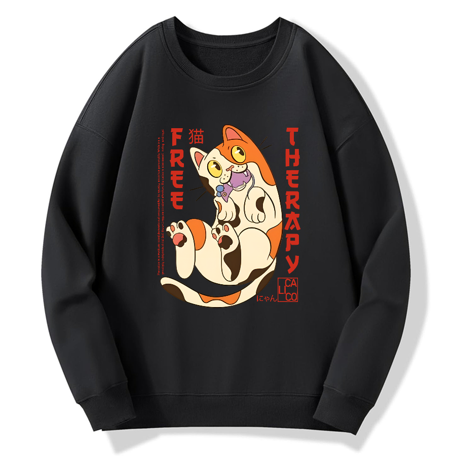 Cute Cat Japanese Art Cotton Pullover Sweatshirt