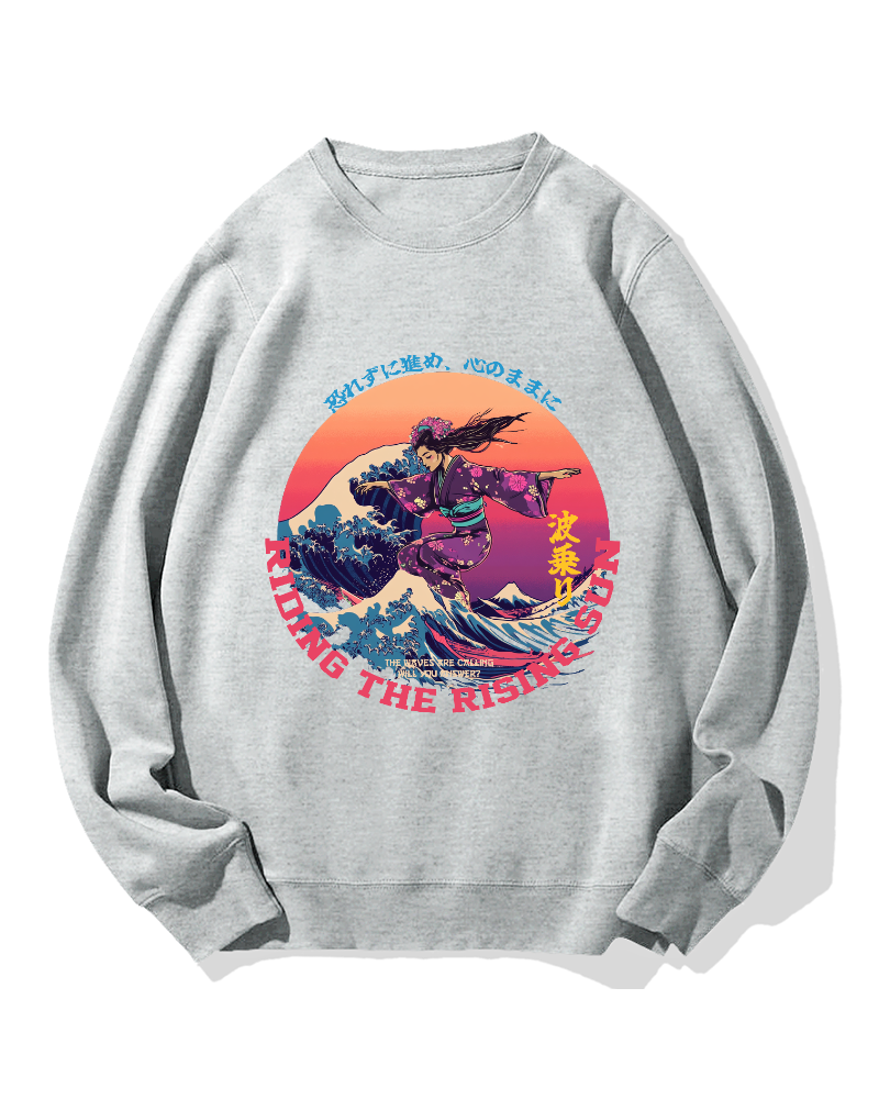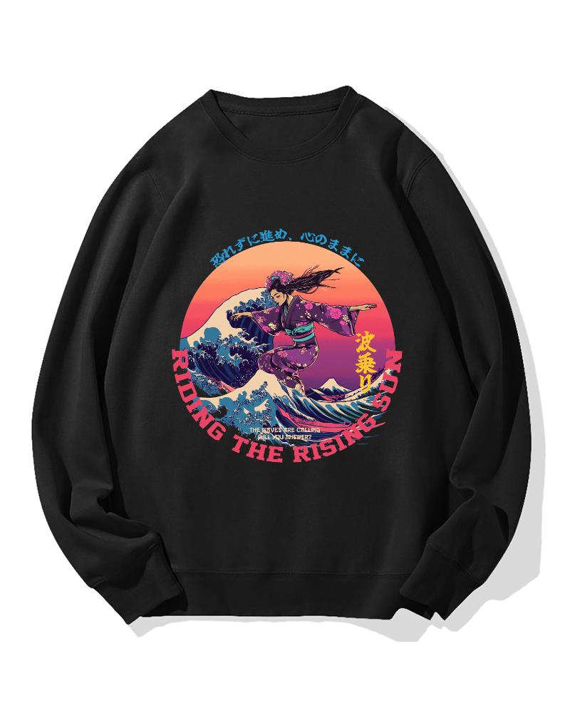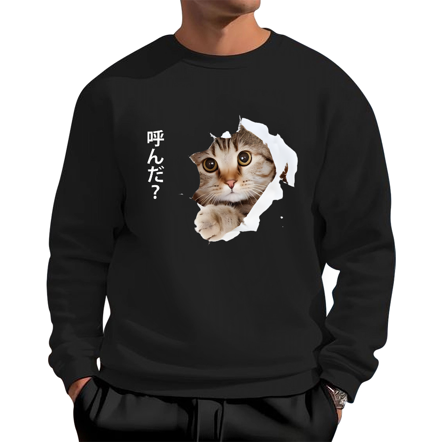 Cat Japanese Art Cotton Pullover Sweatshirt