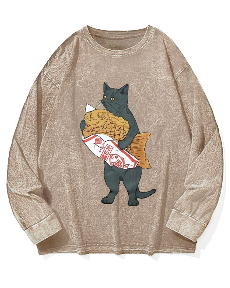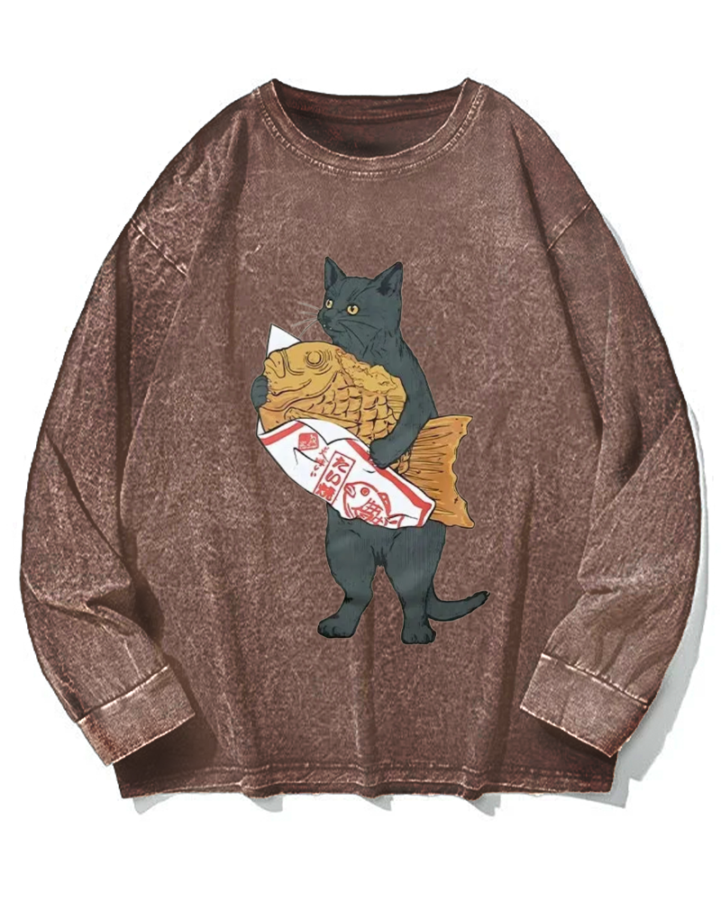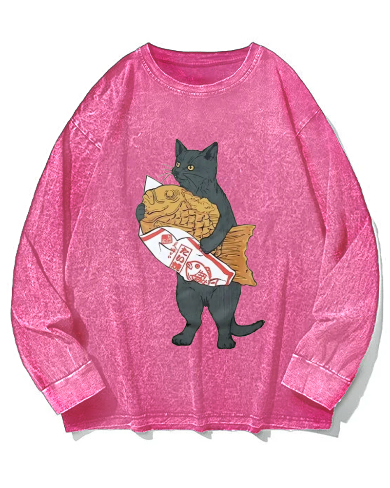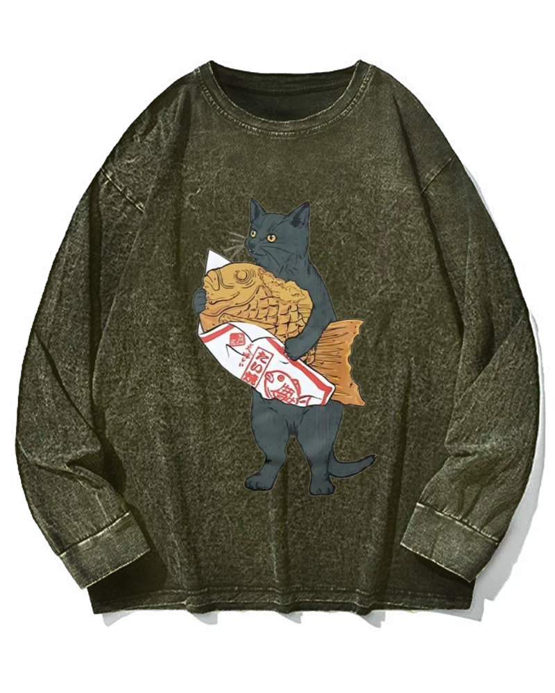 Cat holding taiyaki Vintage Washed Sweatshirts