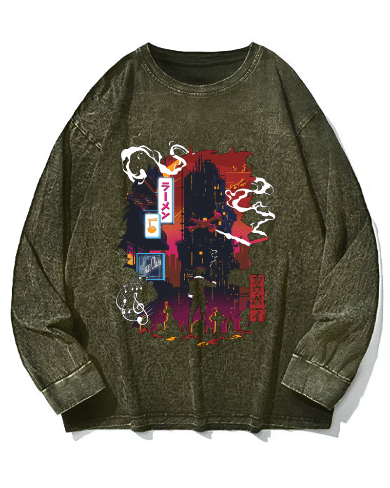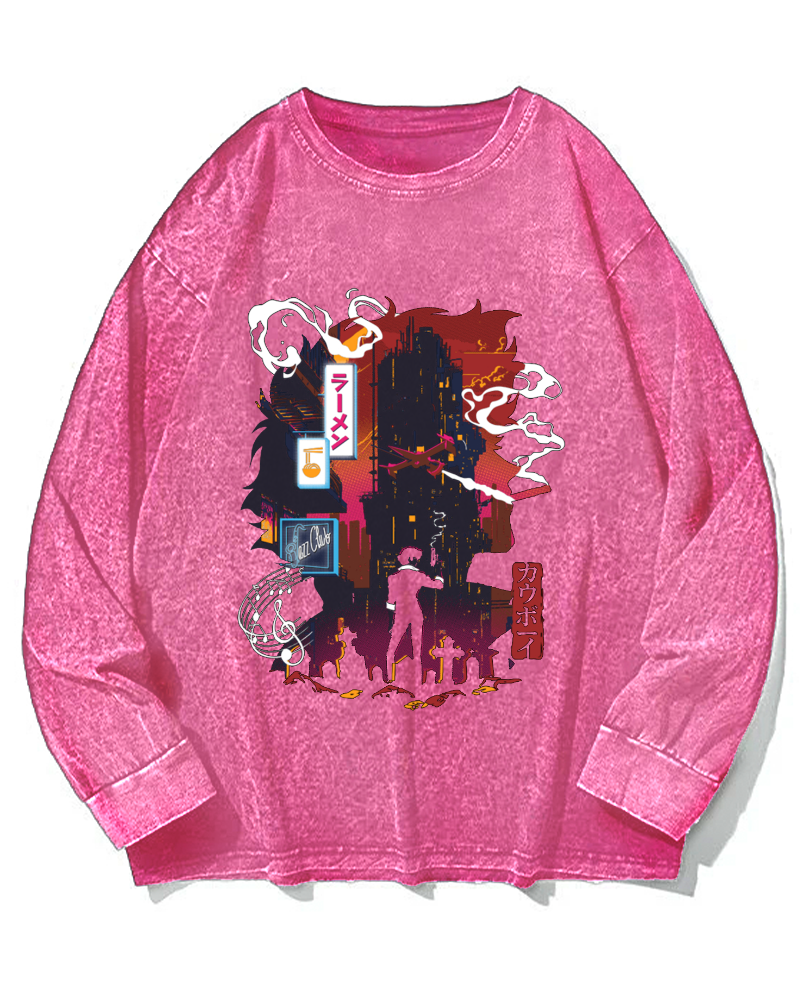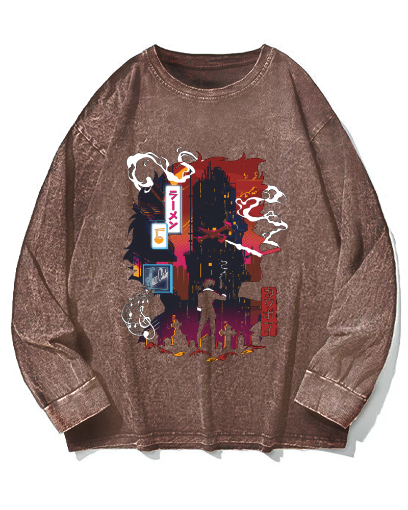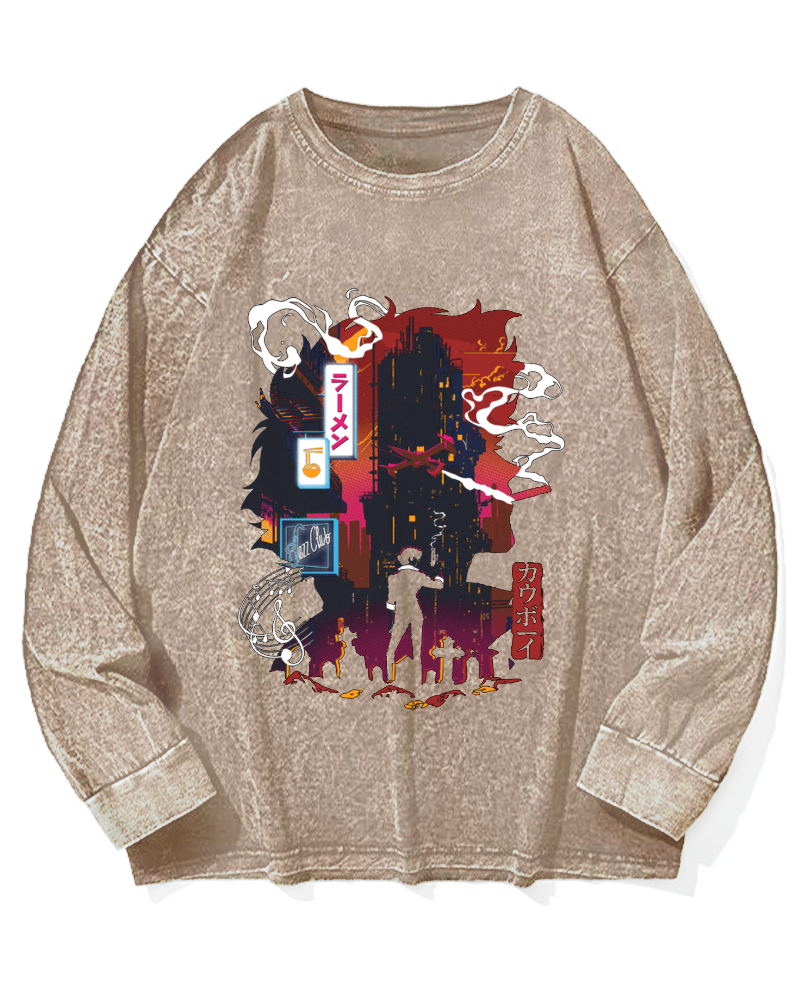 Japanese Cyber Cowboy Vintage Washed Sweatshirts