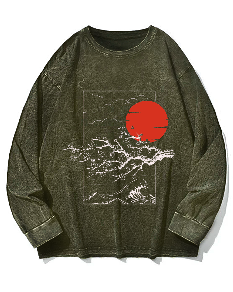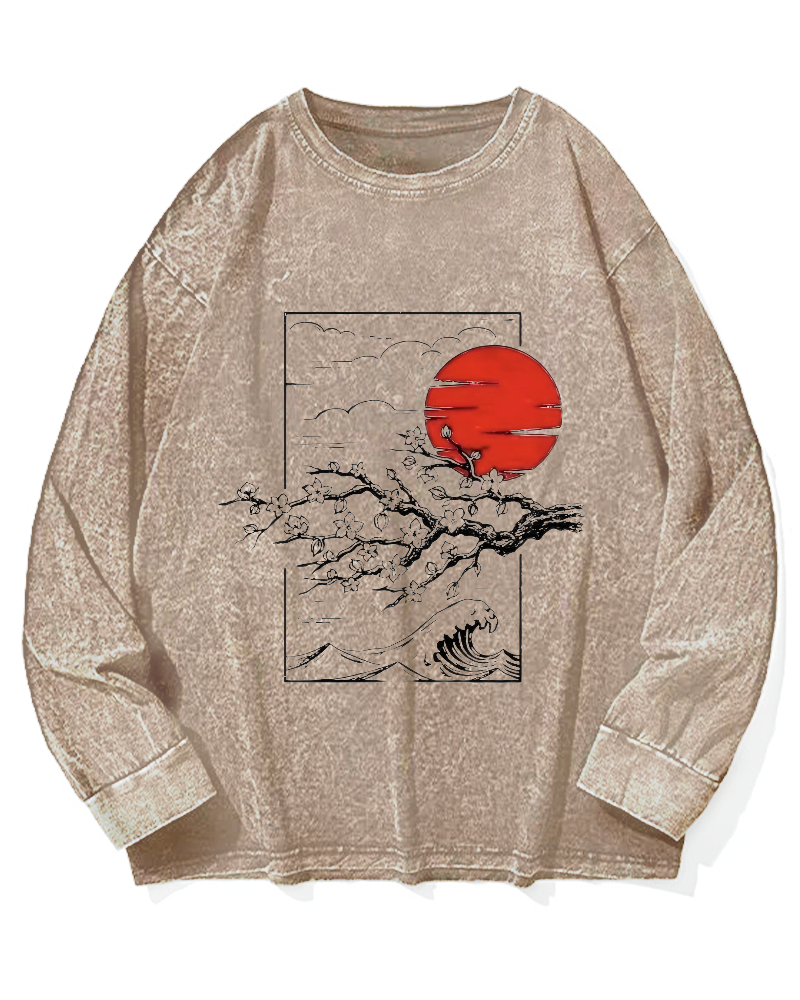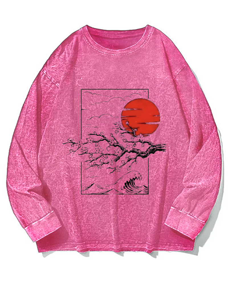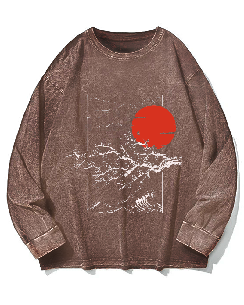 Japanese Sakura & hinomaru Vintage Washed Sweatshirts
