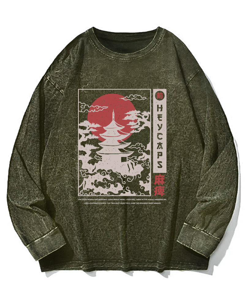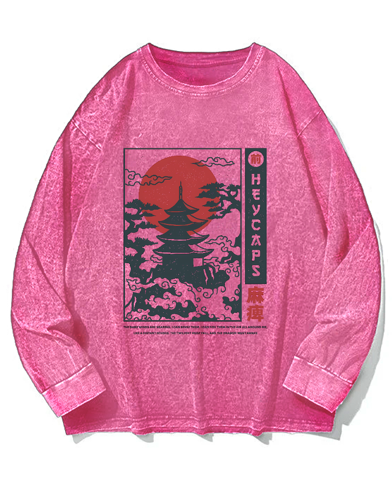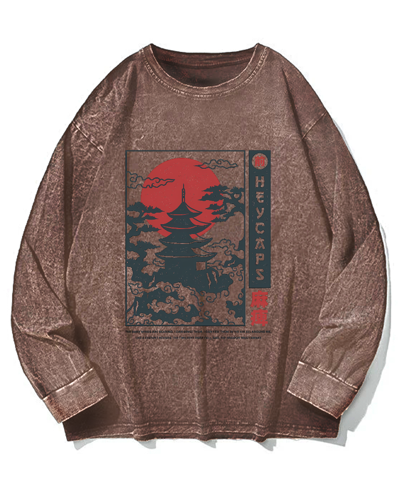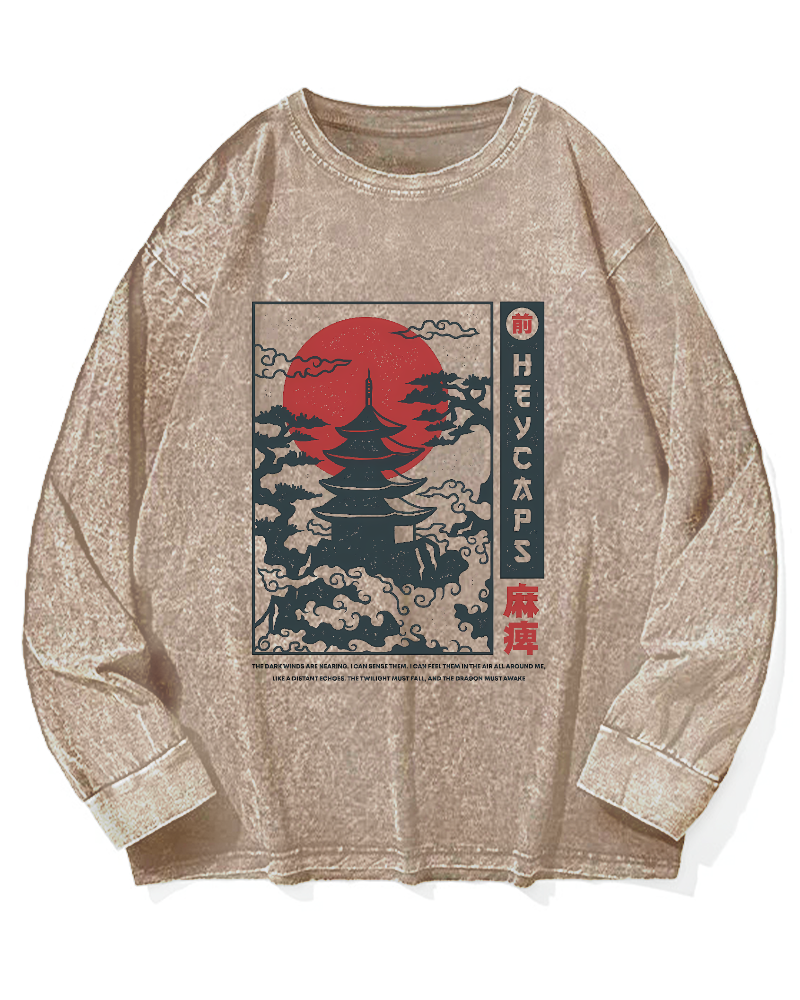• Kyoto Japanese Old Capital Temple Vintage Washed Sweatshirts