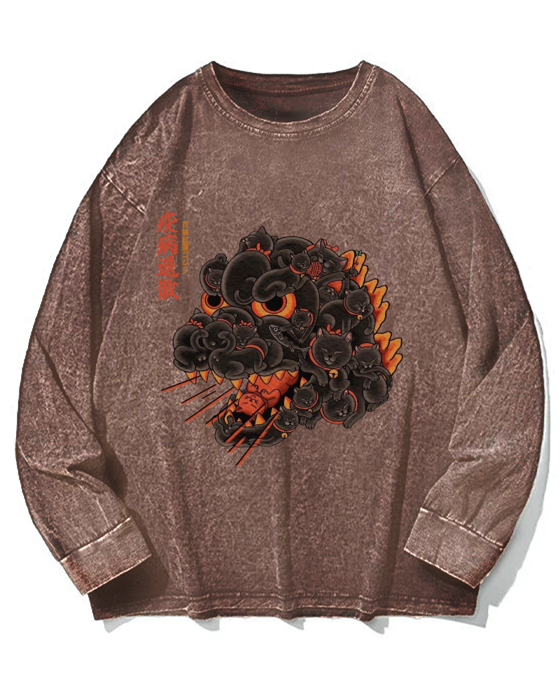 • Lucky Catzilla Vintage Washed Sweatshirts