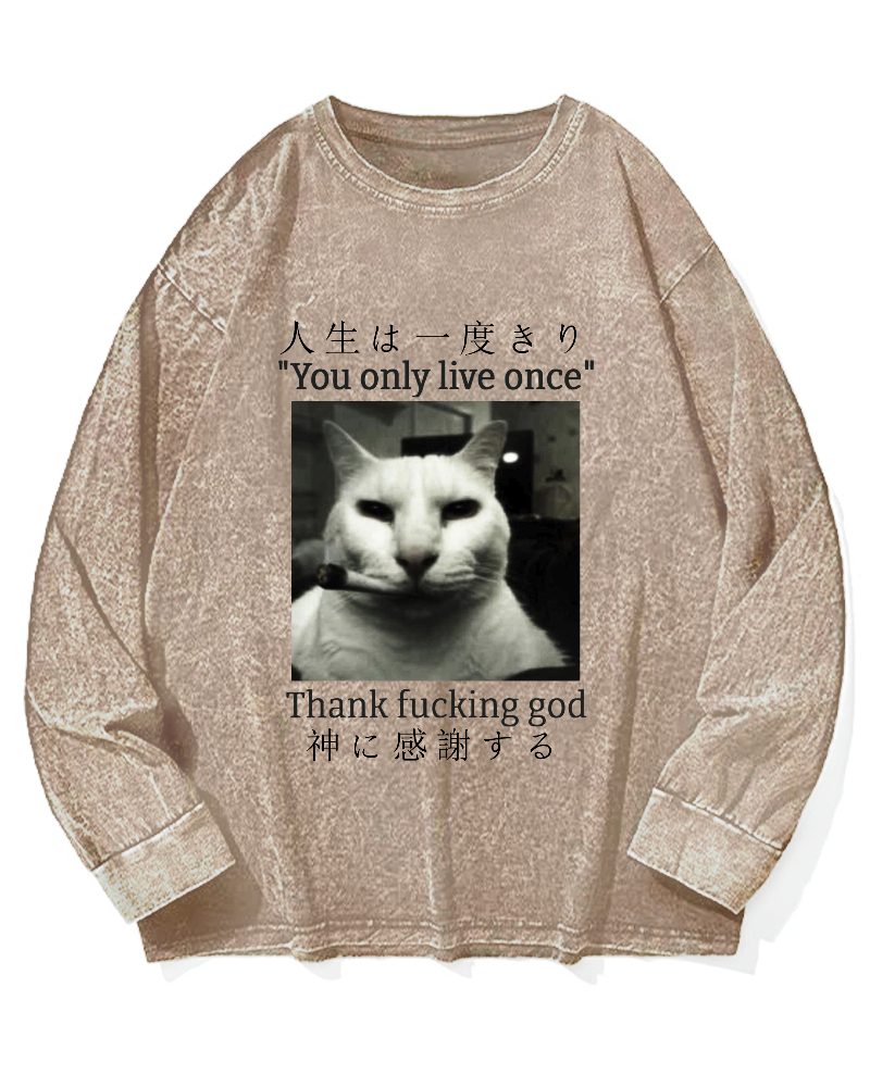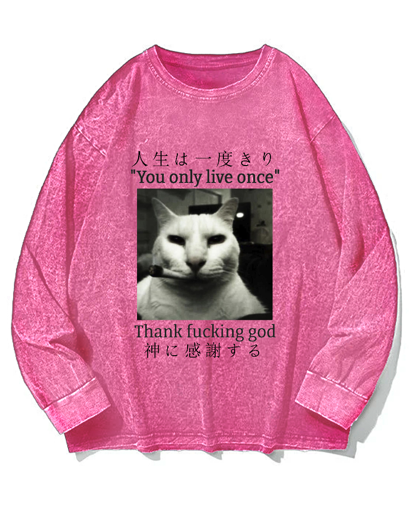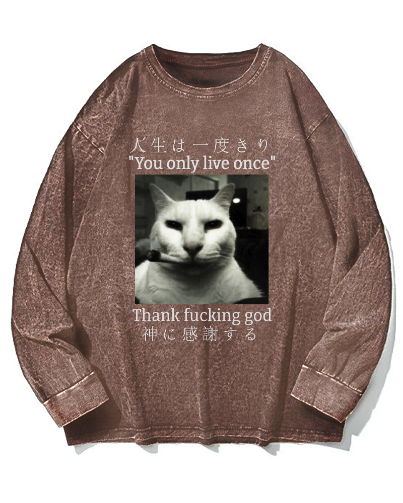 Meme Smoking Cat Vintage Washed Sweatshirts