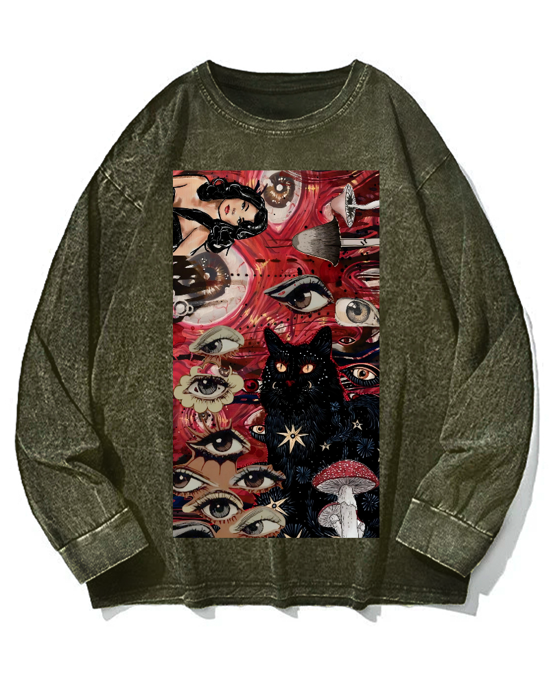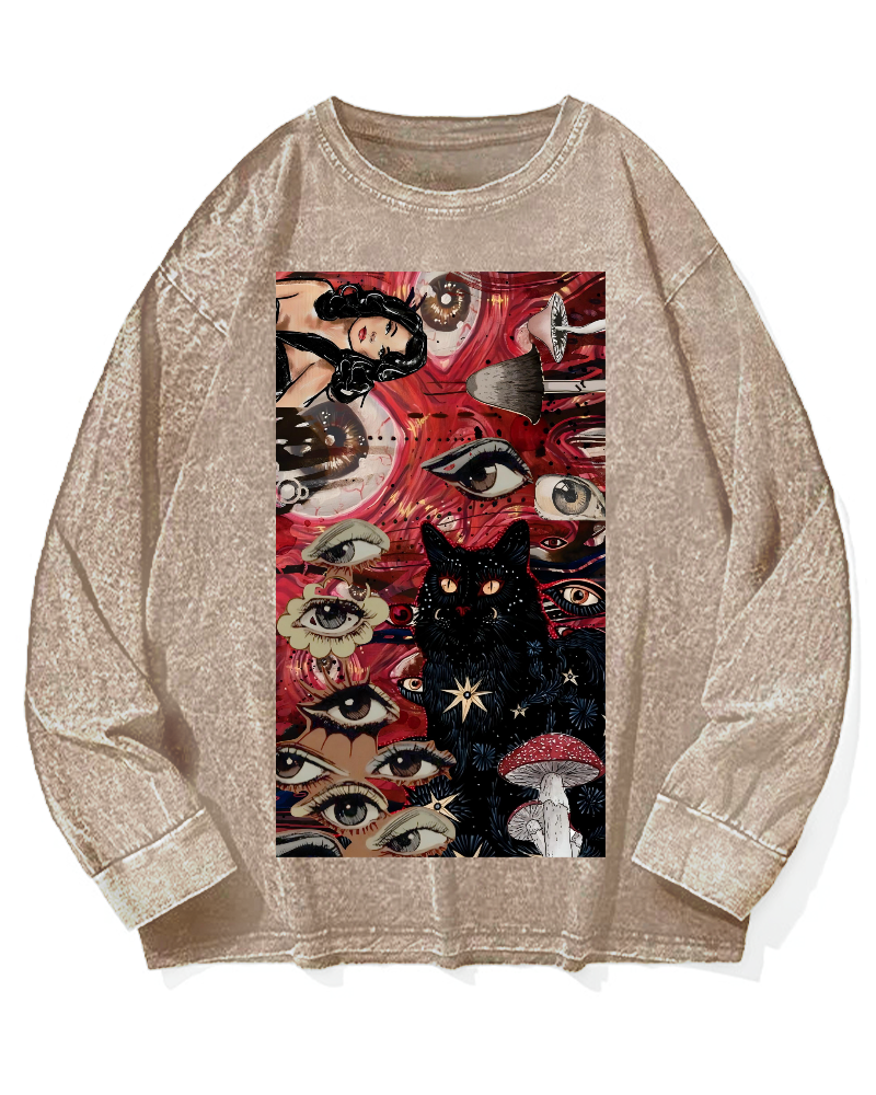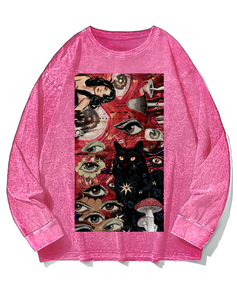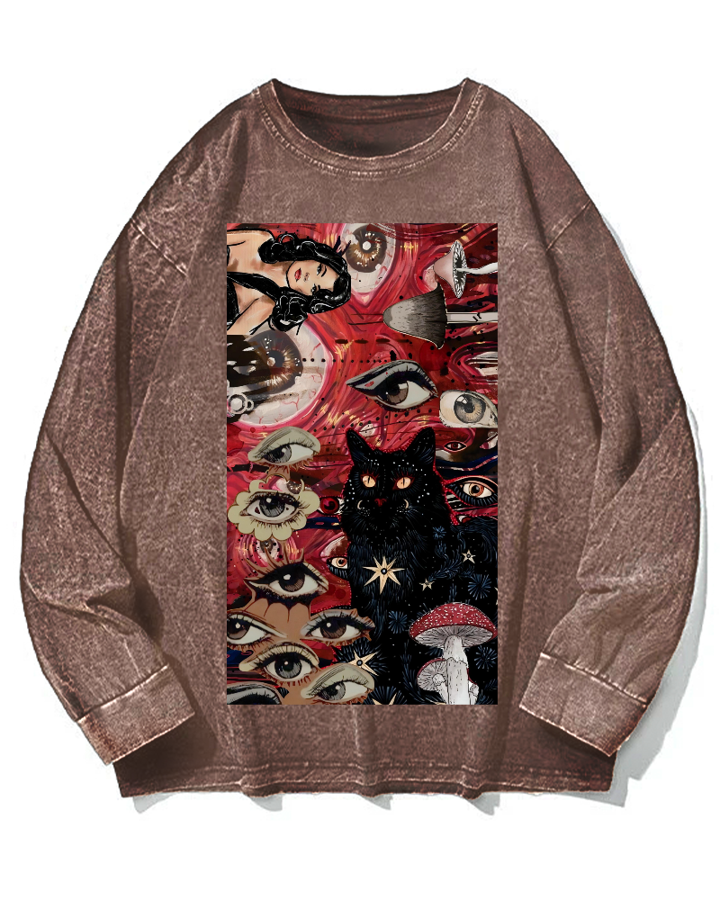 • Psychedelic Black Cat Vintage Washed Sweatshirts
