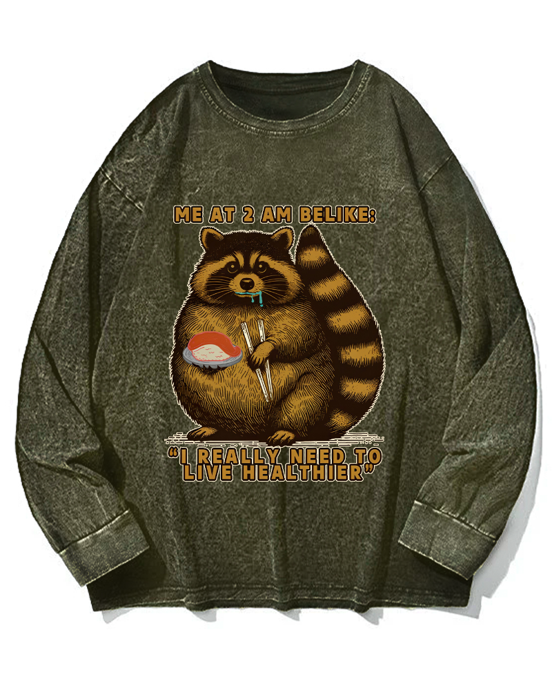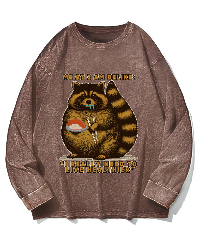 • Raccoon Eating Sushi Vintage Washed Sweatshirts