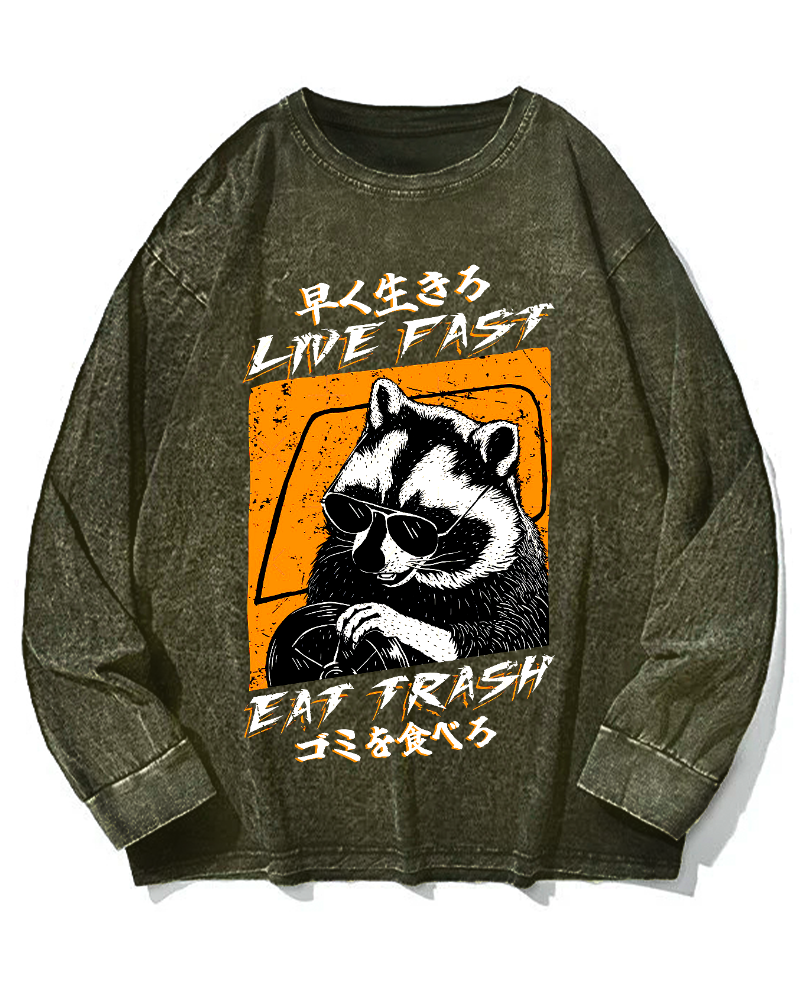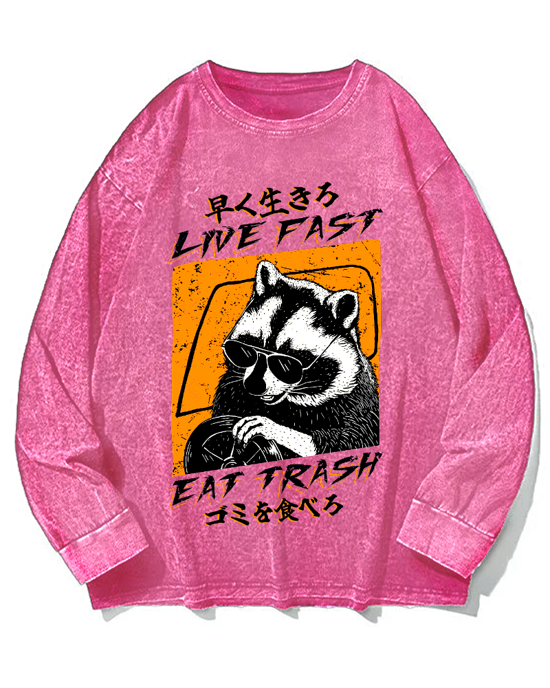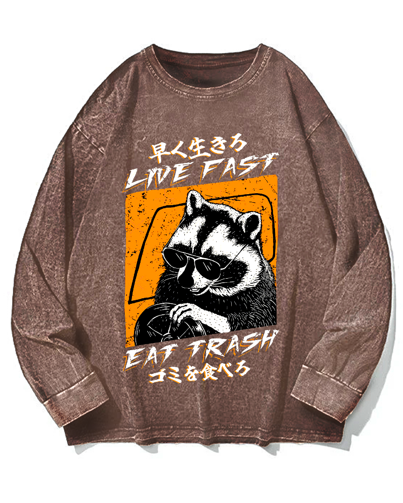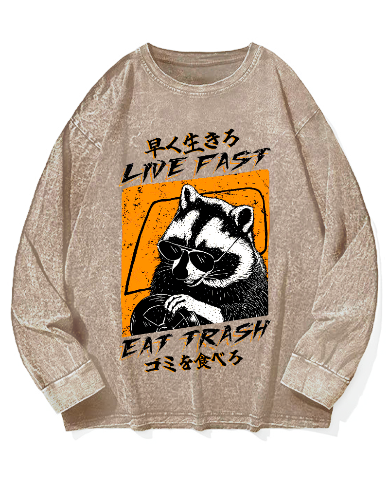 Raccoon Live Fast Eat Trash Vintage Washed Sweatshirts