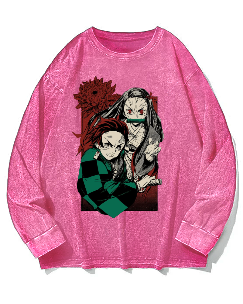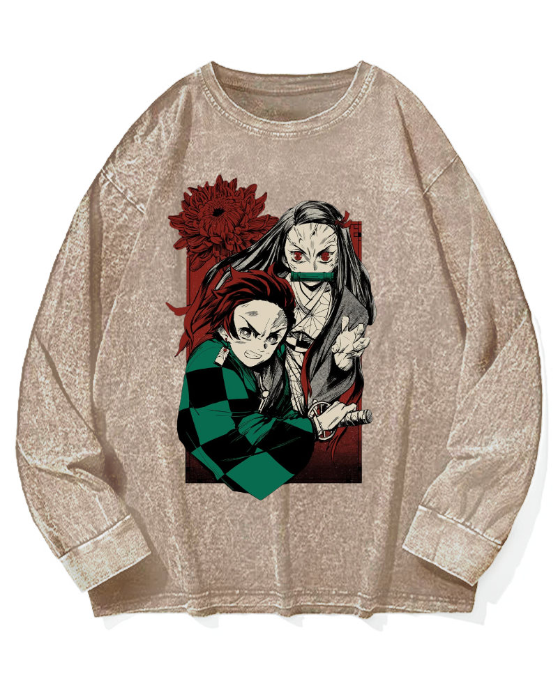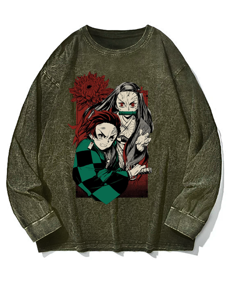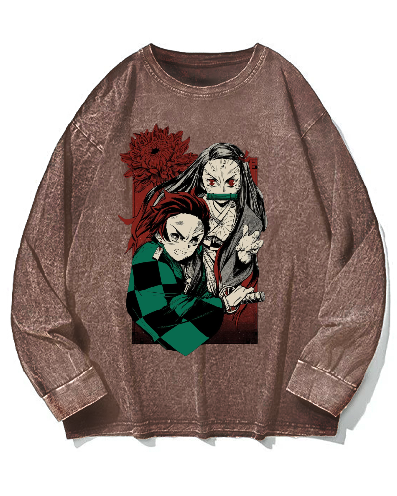 Tanjiro and Nezuko Vintage Washed Sweatshirts