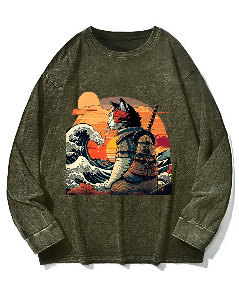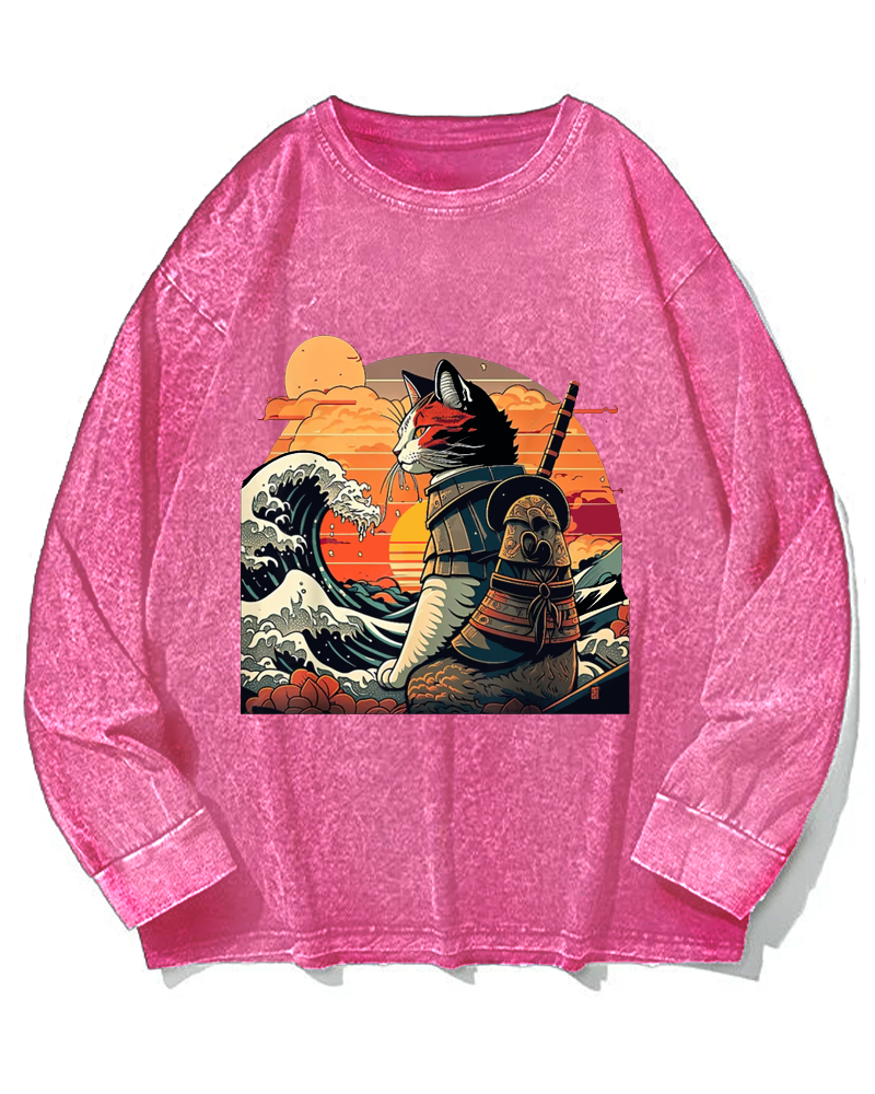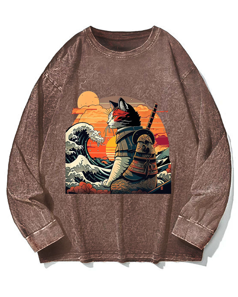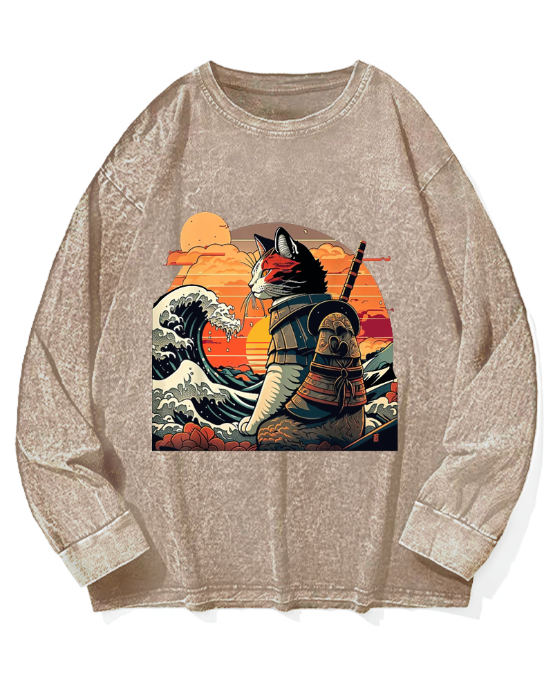 Wave & Samurai Cat Vintage Washed Sweatshirts