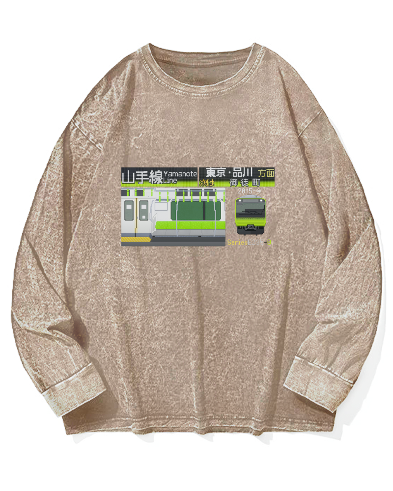 • Yamanote Line Train Vintage Washed Sweatshirts