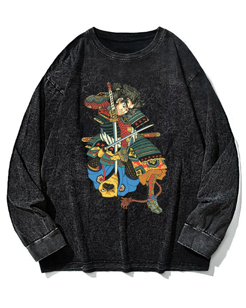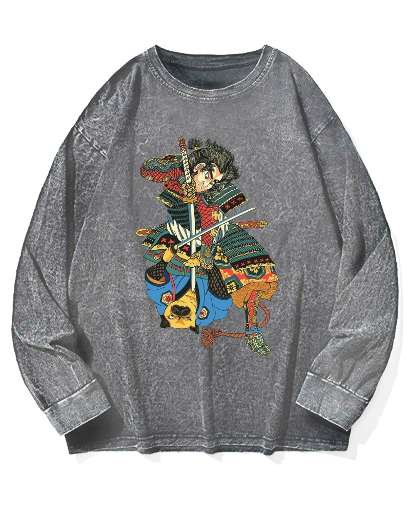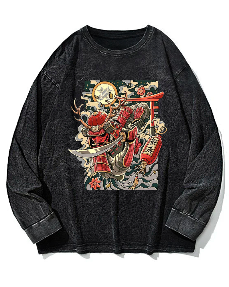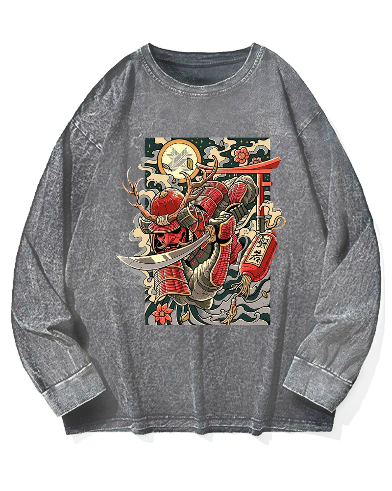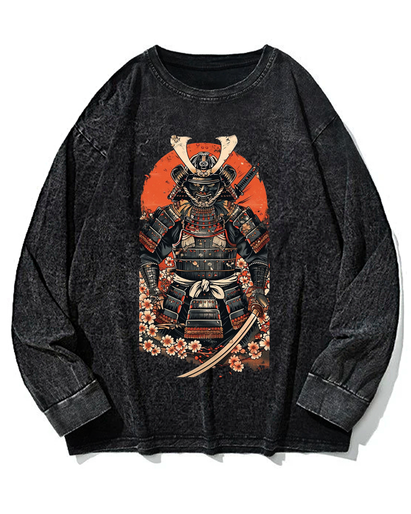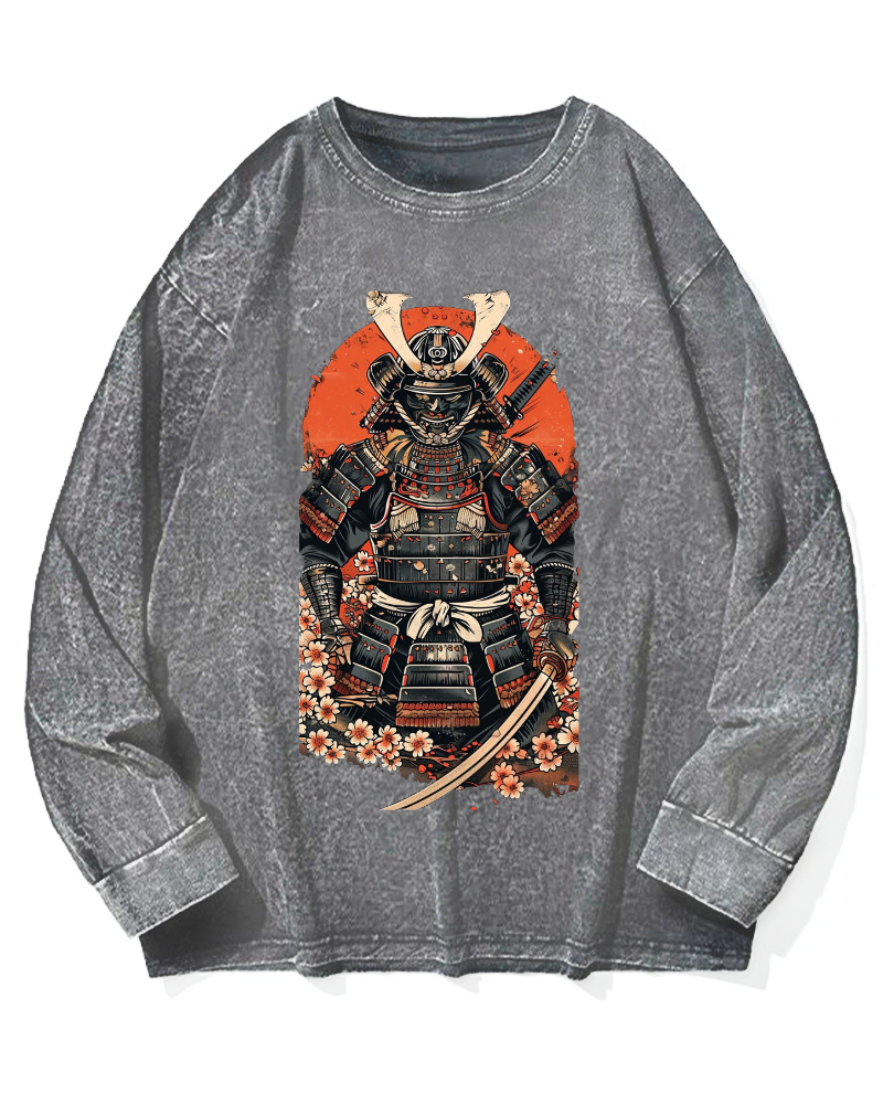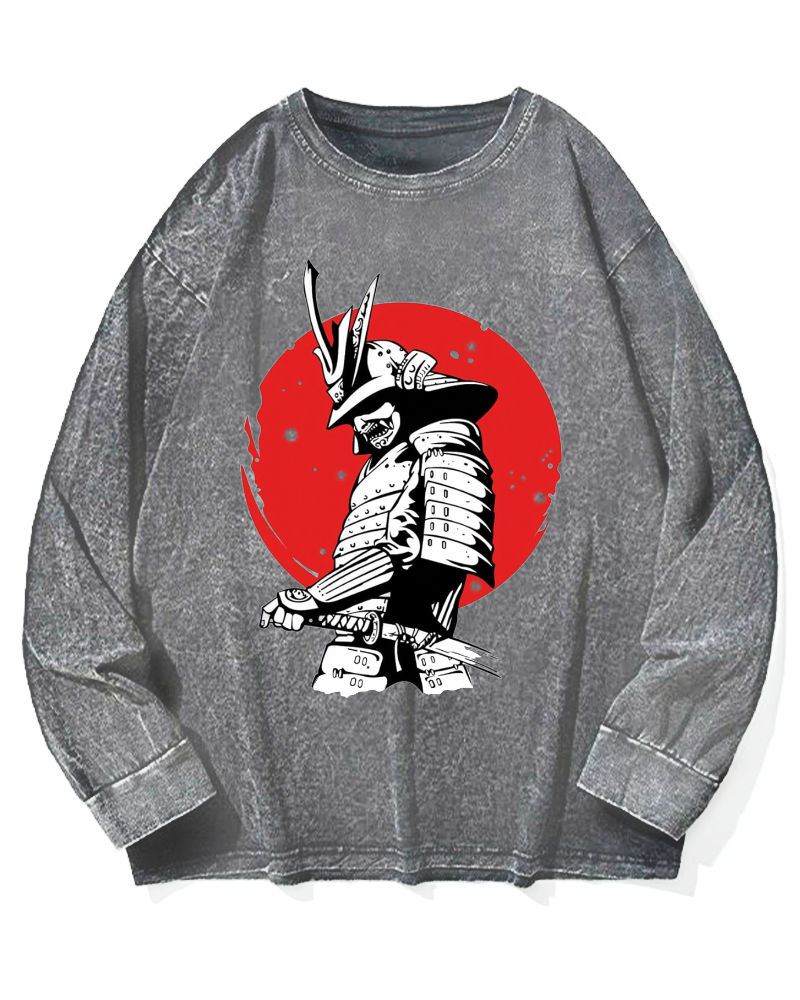 Hinomaru and Japanese samurai Vintage Washed Sweatshirts