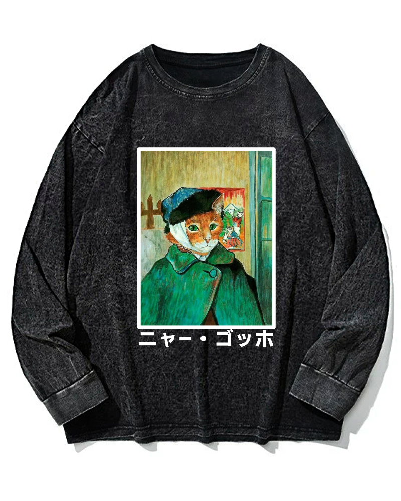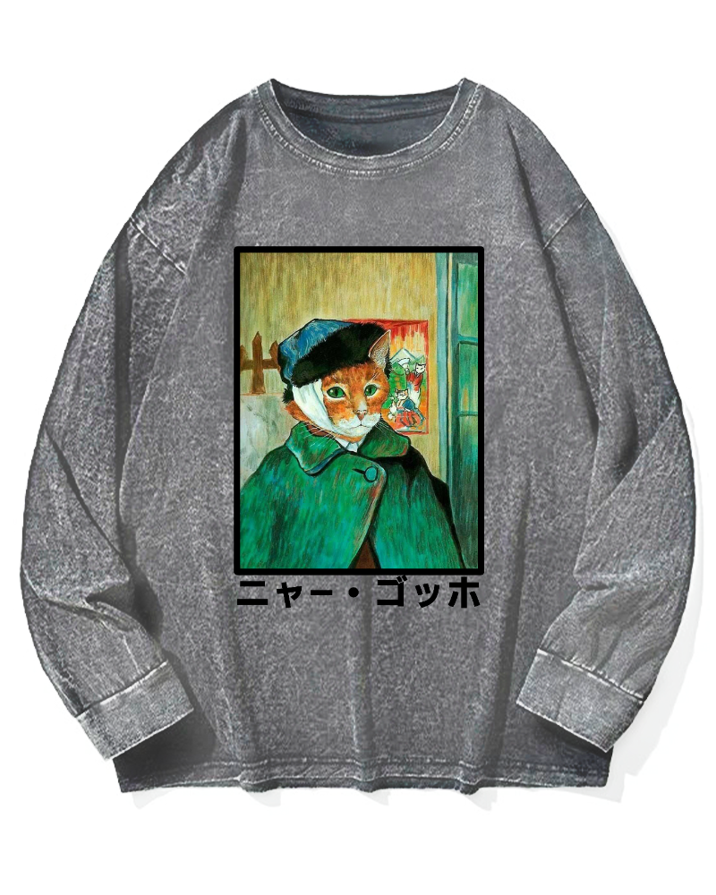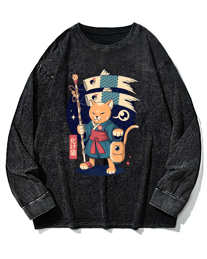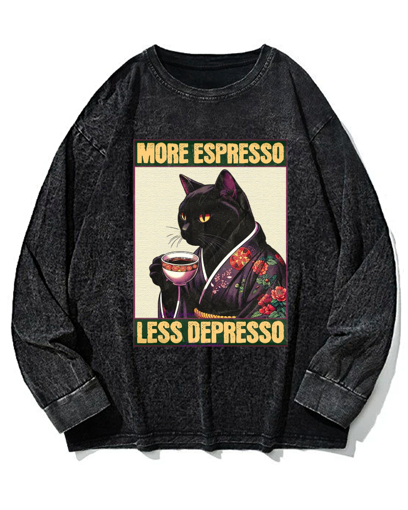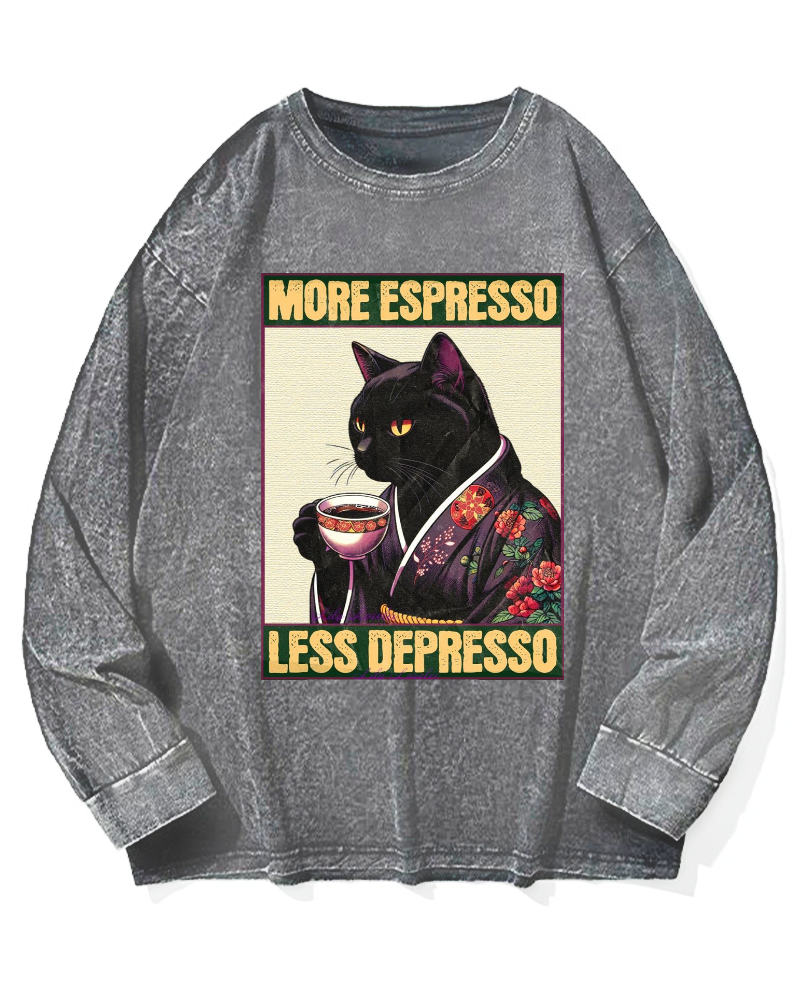 Kimono Coffee Cat Vintage Washed Sweatshirts