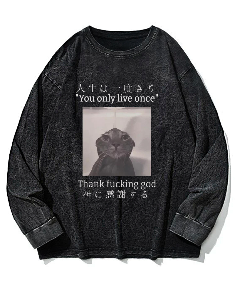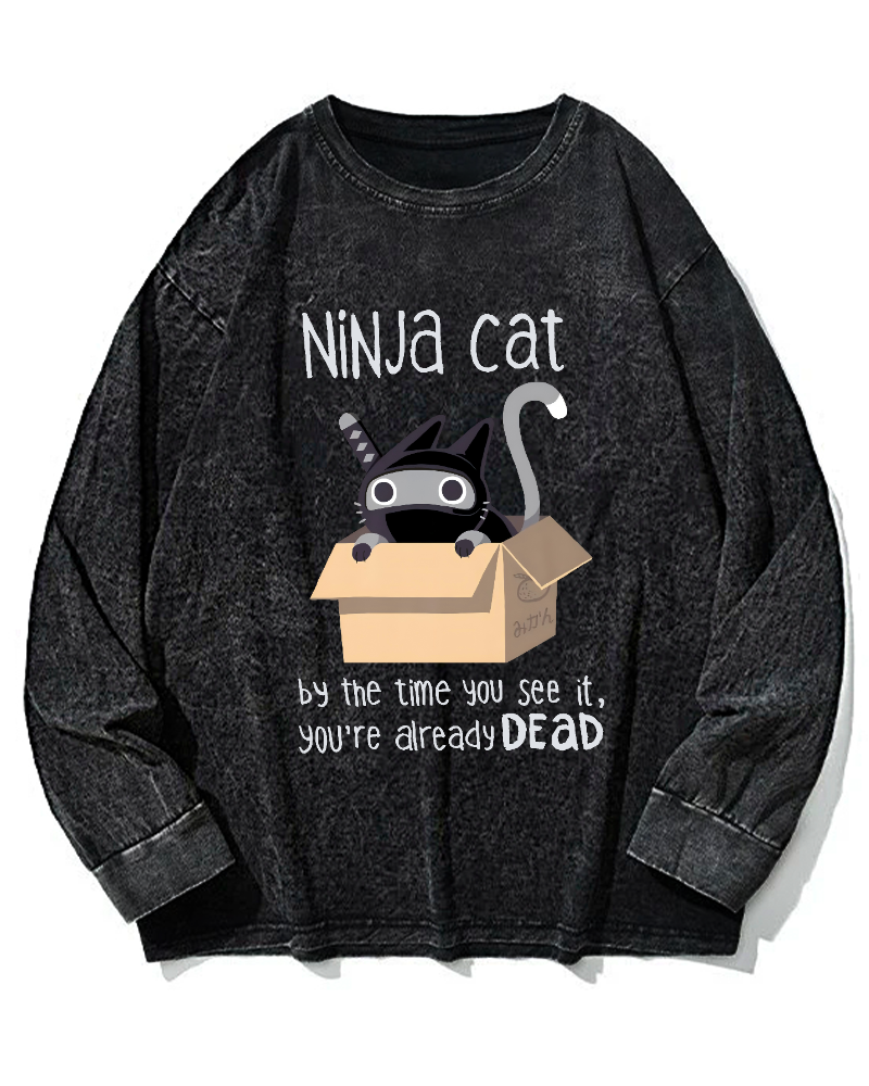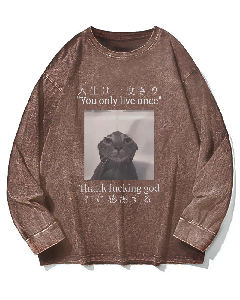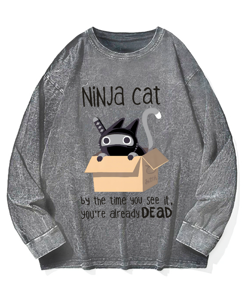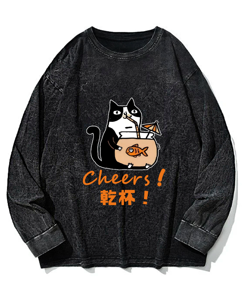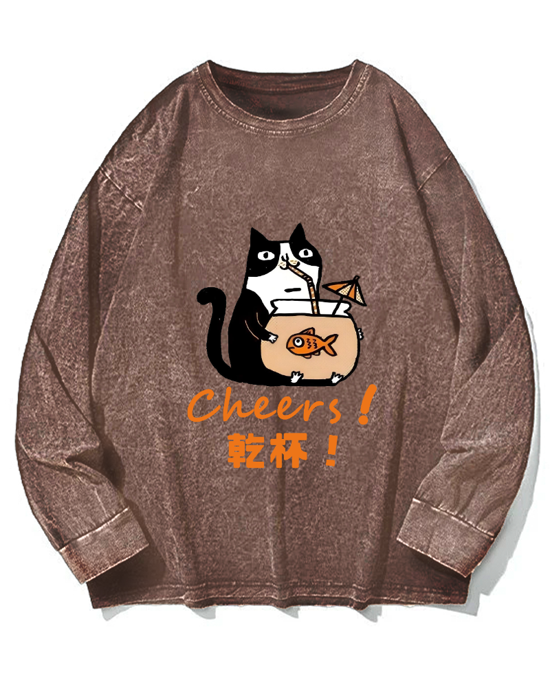 Kimono Coffee Cat Vintage Washed Sweatshirts