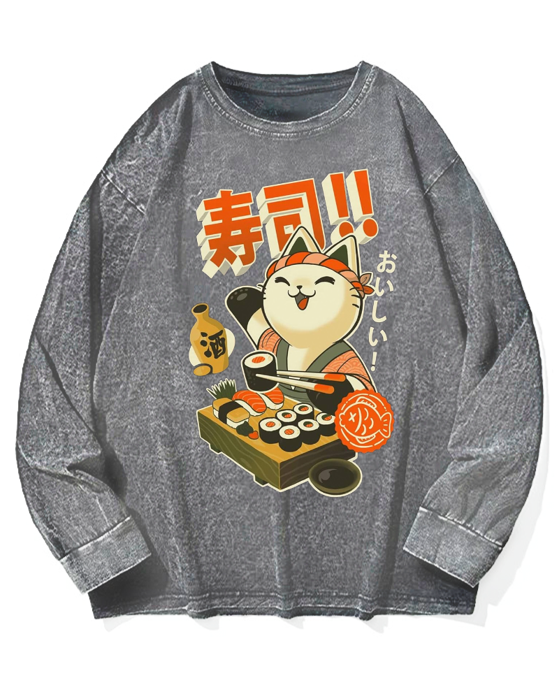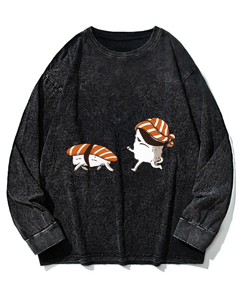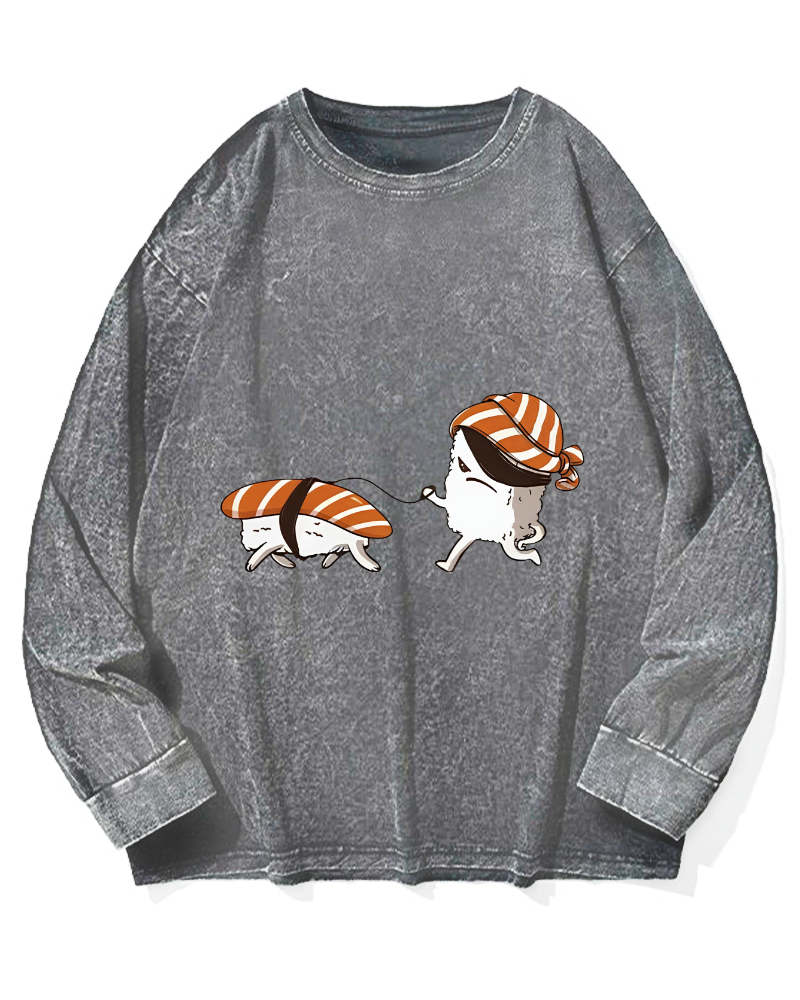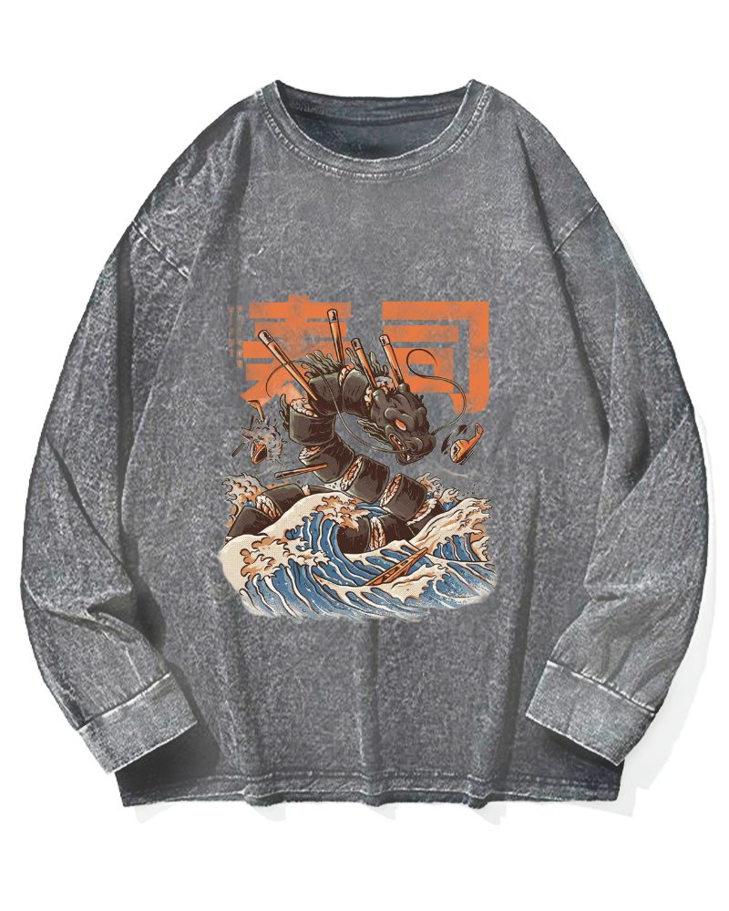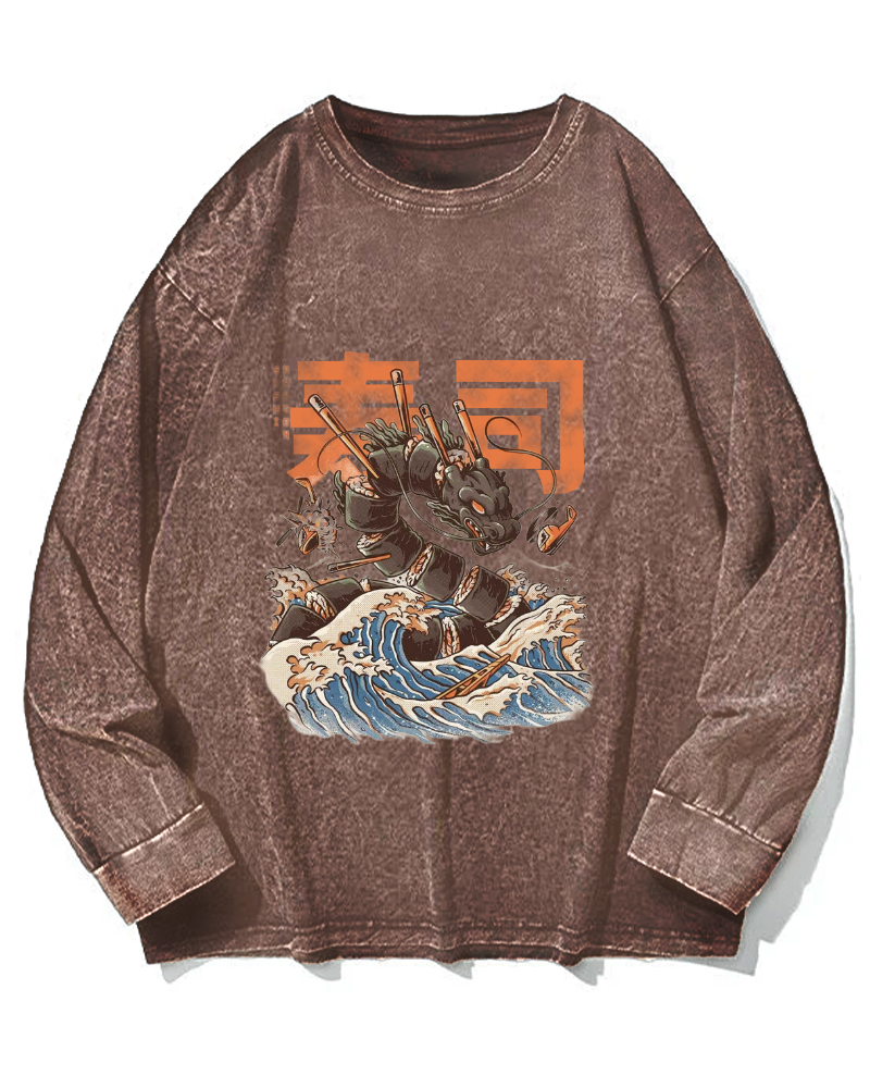 Sushi Dragon Monster Vintage Washed Sweatshirts
