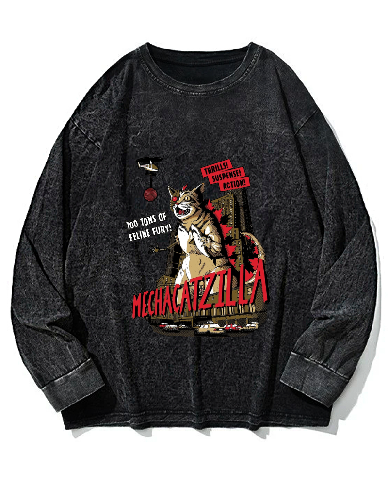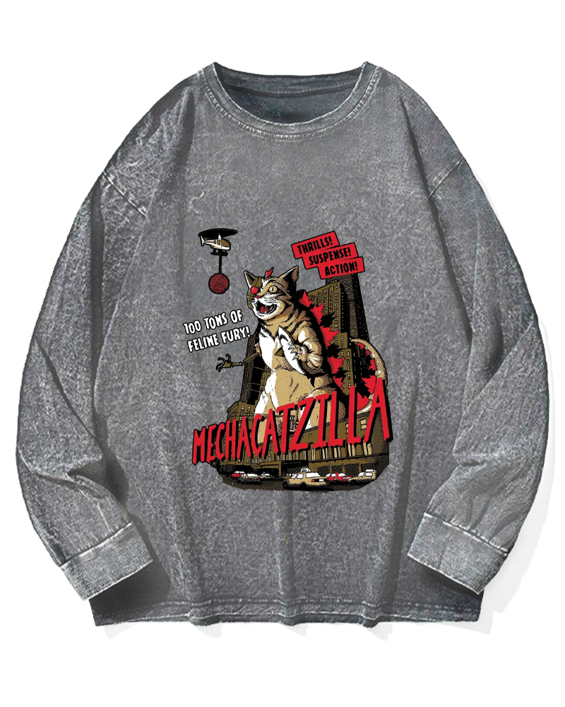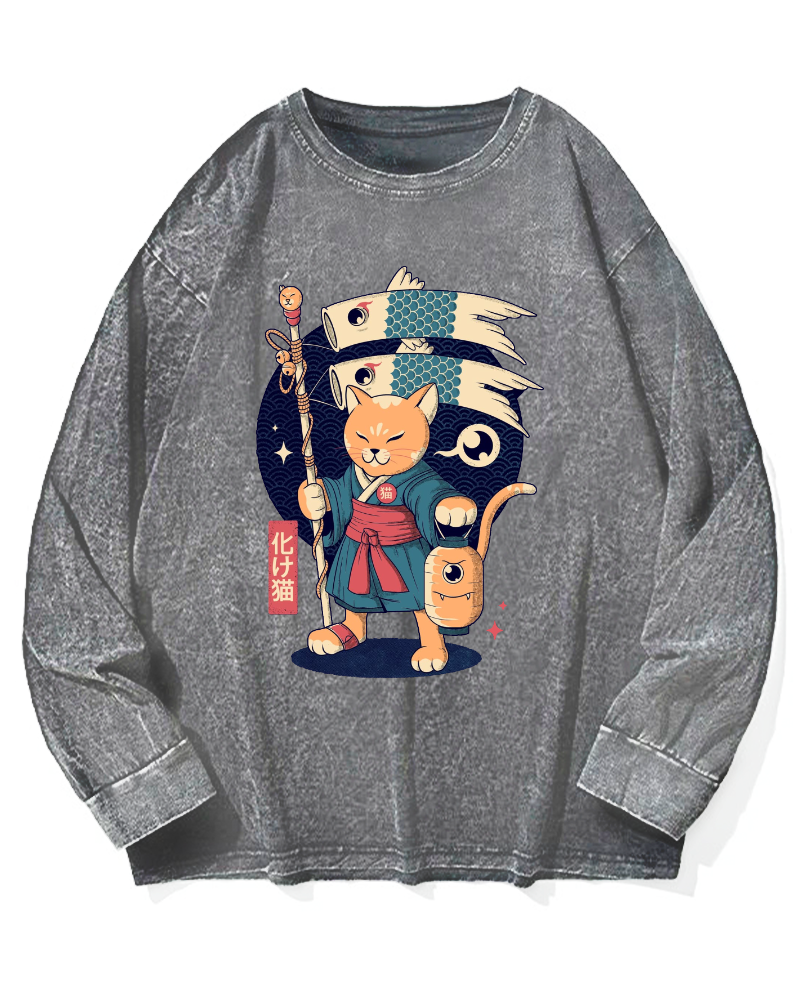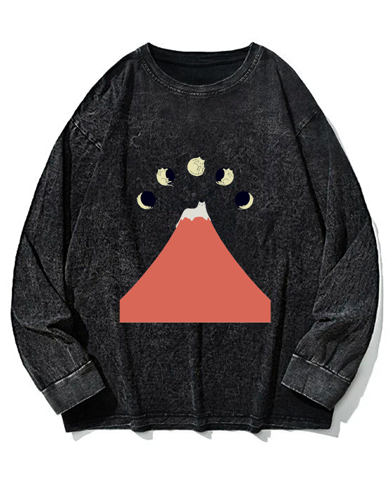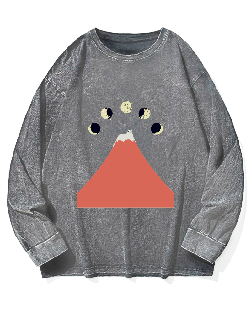Fuji Mountain Cat Moon Vintage Washed Sweatshirts