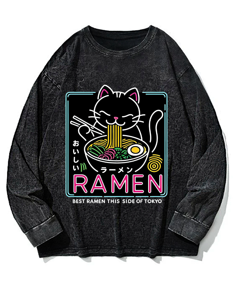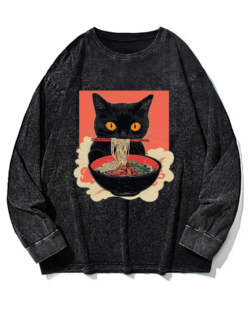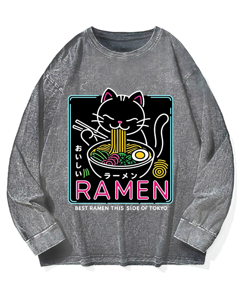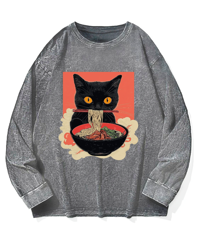 Neon Cat Ramen Vintage Washed Sweatshirts