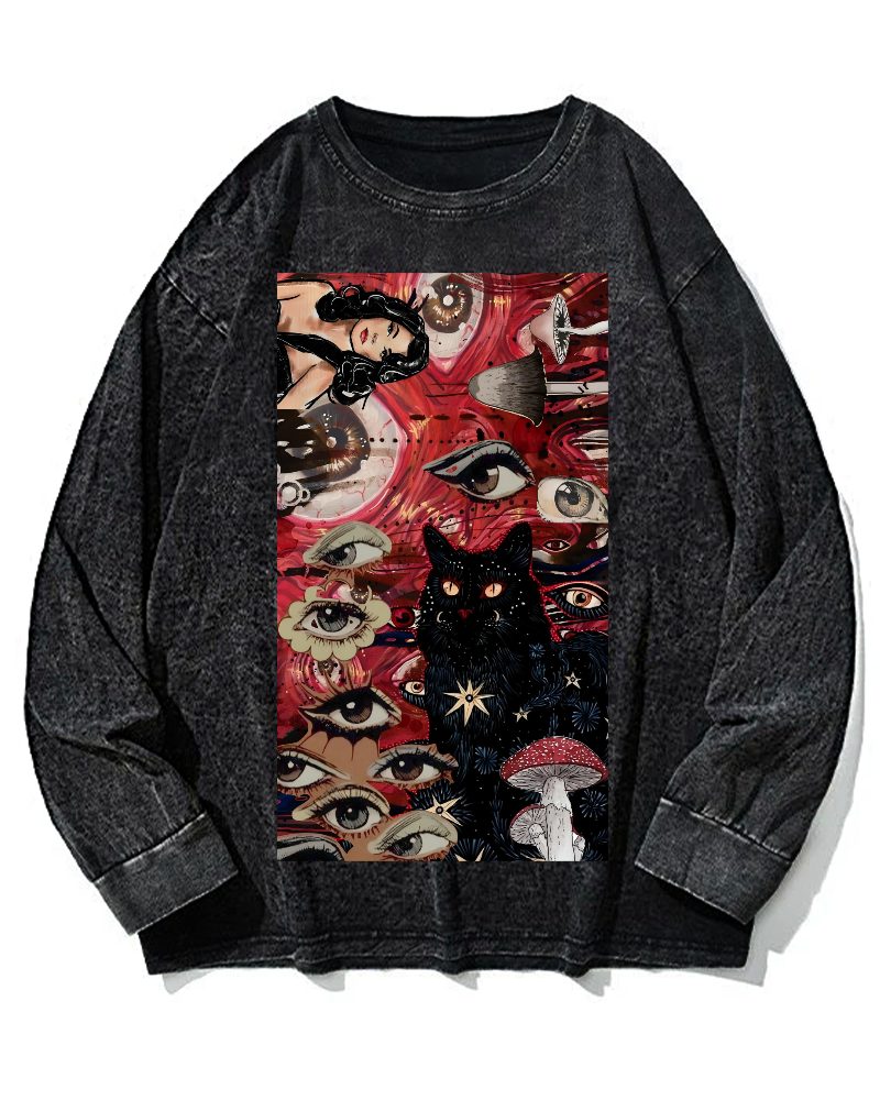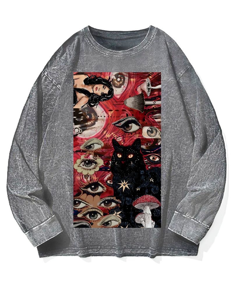 Psychedelic Black Cat Vintage Washed Sweatshirts