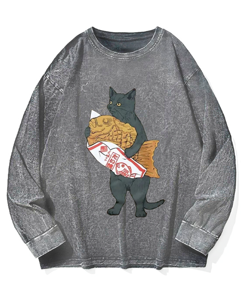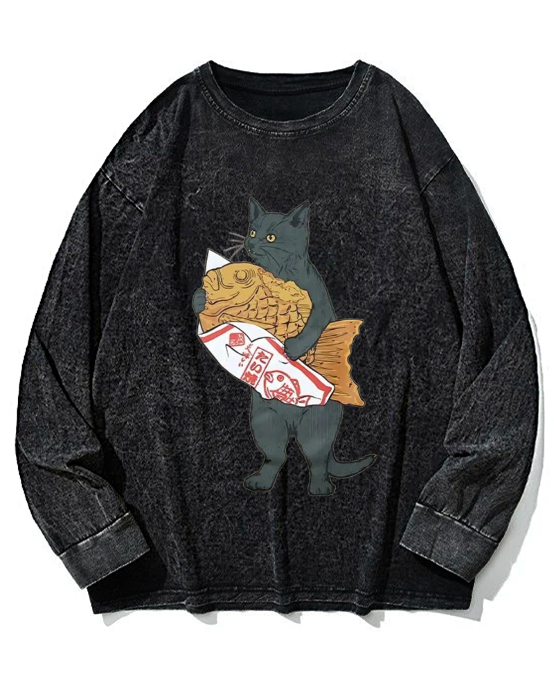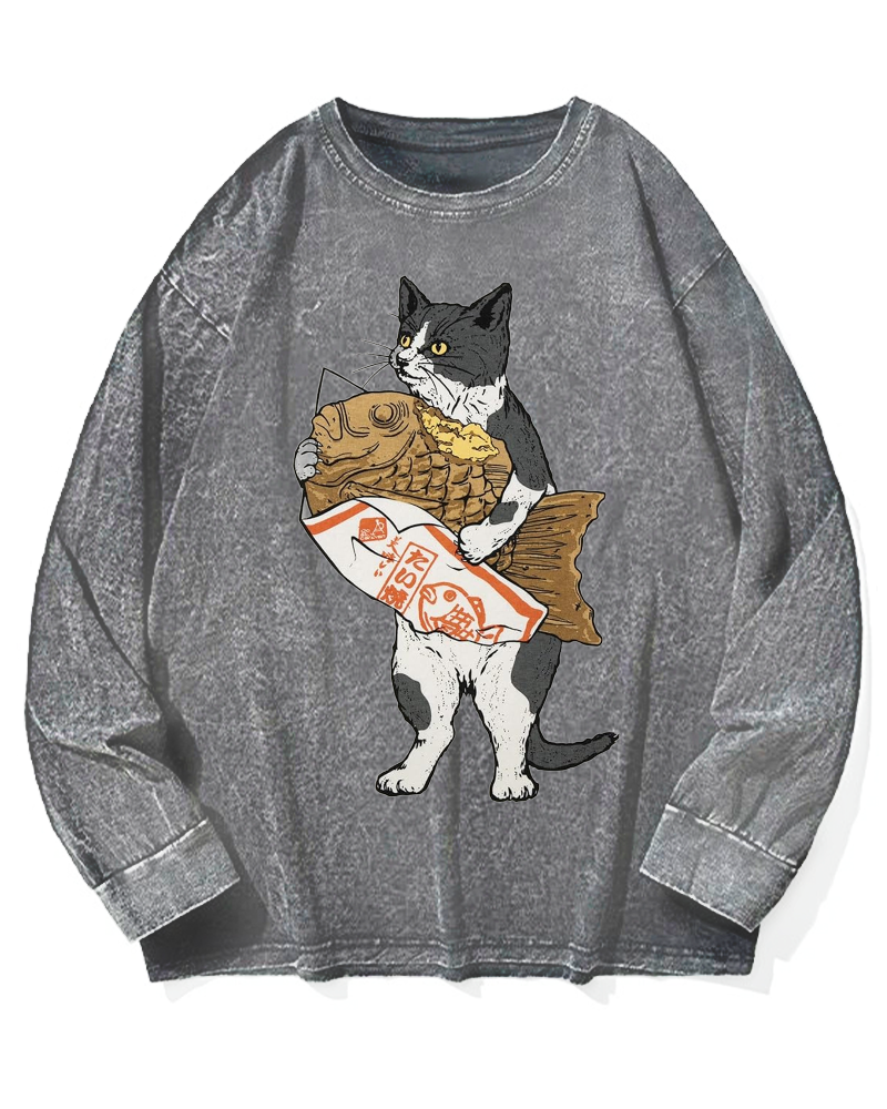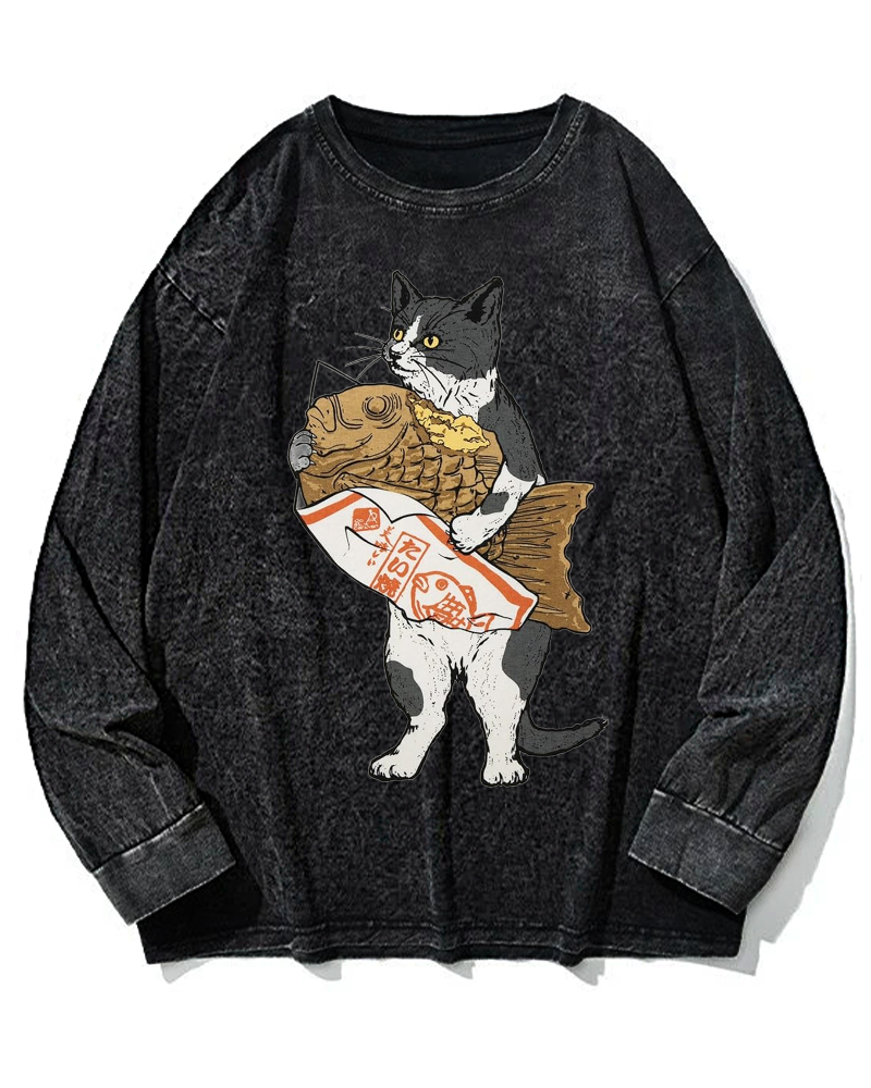 Cat holding taiyaki Vintage Washed Sweatshirts