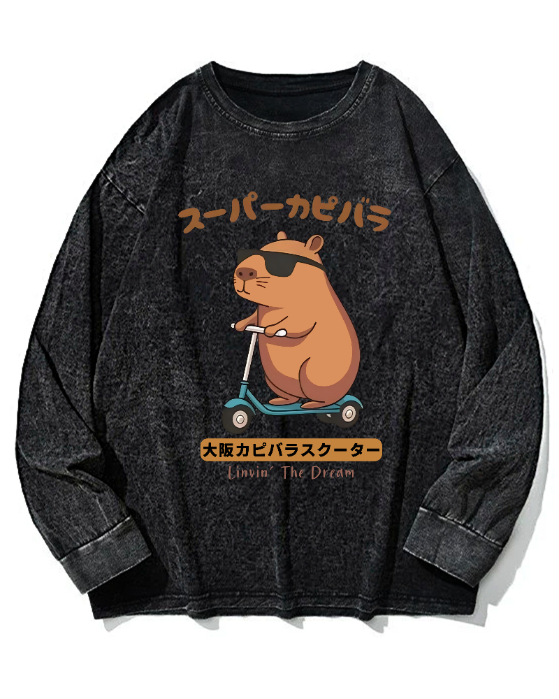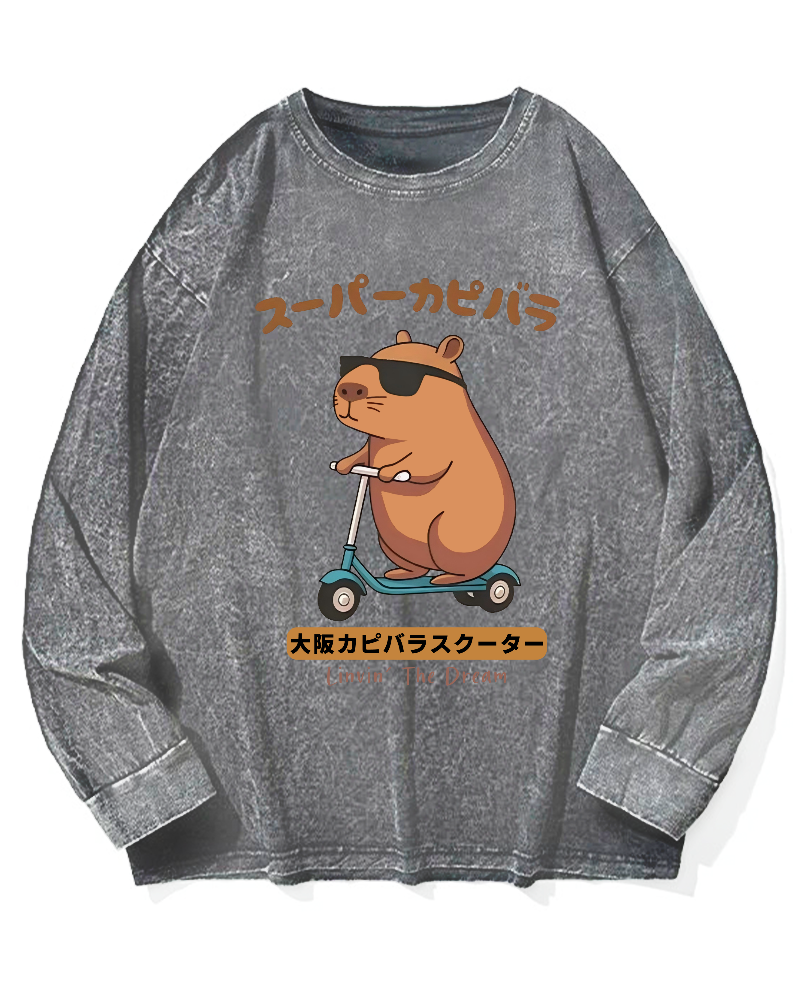 Osaka Capybara Scooter Vintage Washed Sweatshirts