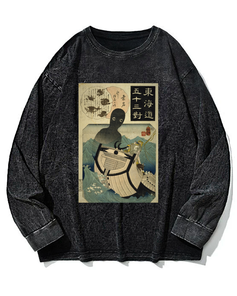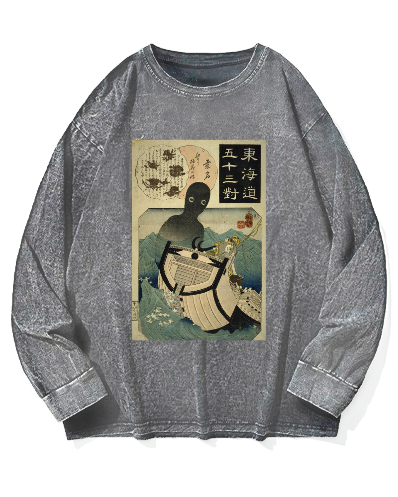 Ghost of the Sea Ukiyo-e Vintage Washed Sweatshirts