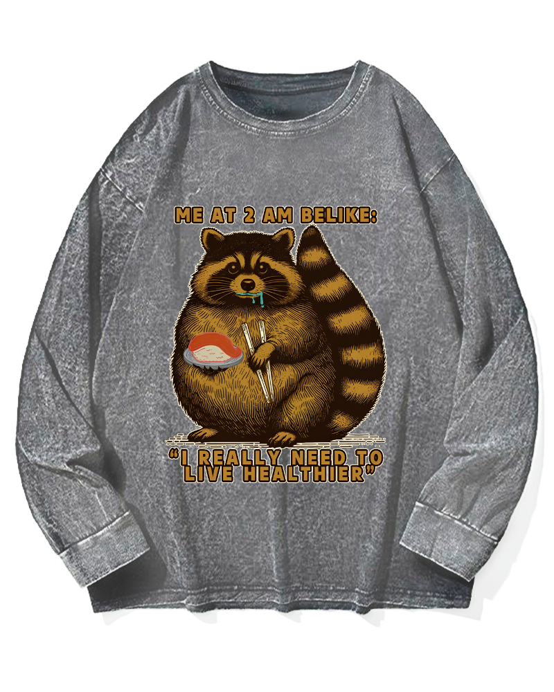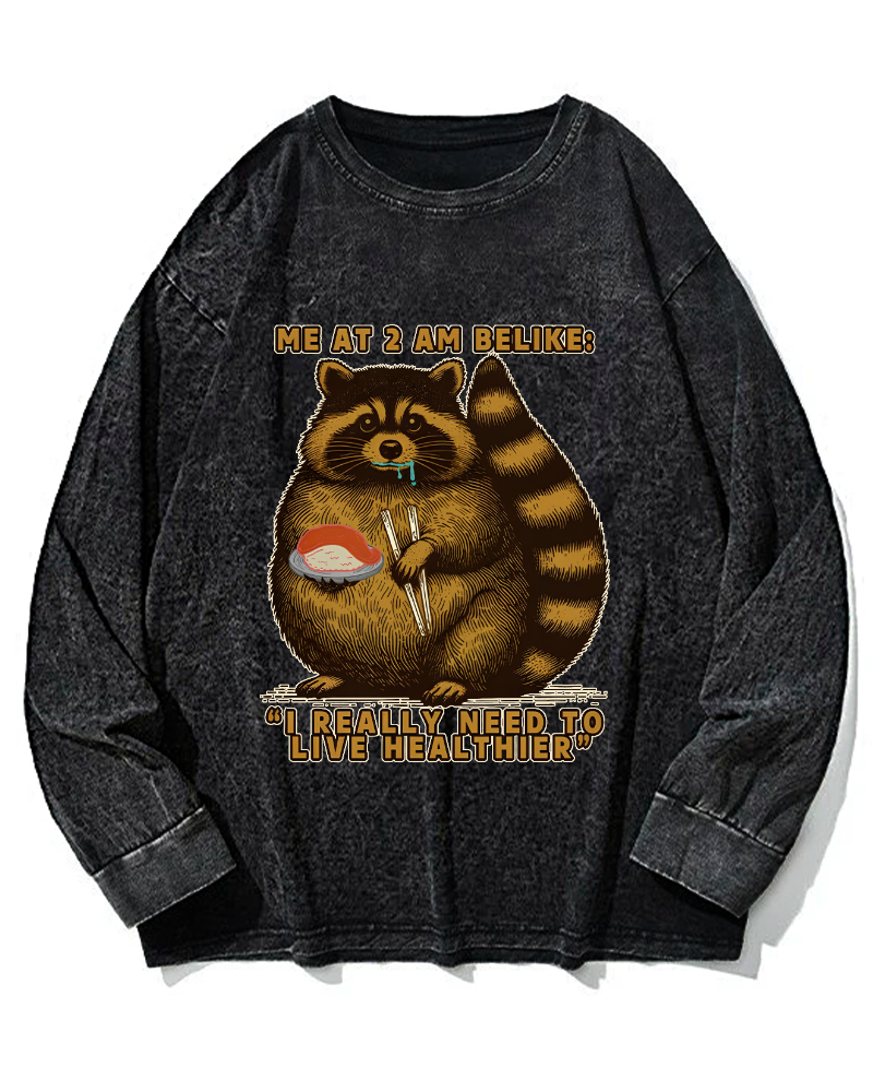 Raccoon Eating Sushi Vintage Washed Sweatshirts