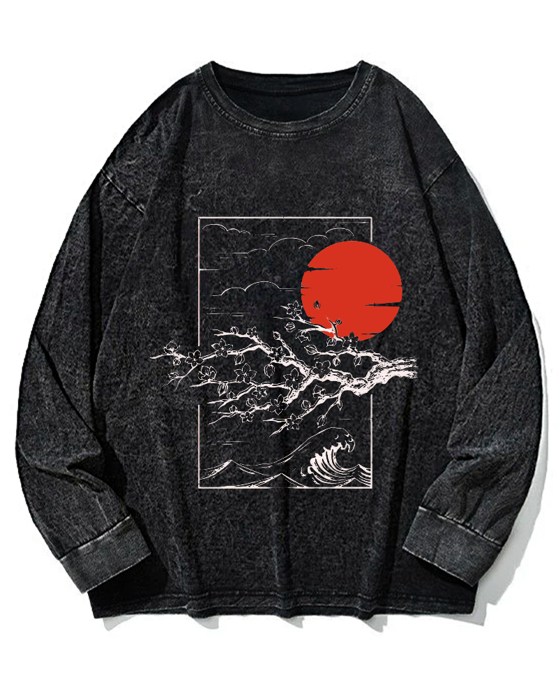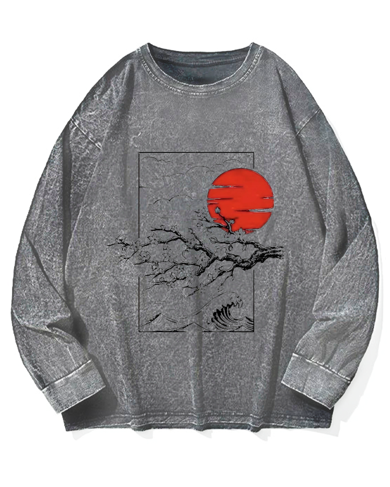 Japanese Sakura & hinomaru Vintage Washed Sweatshirts