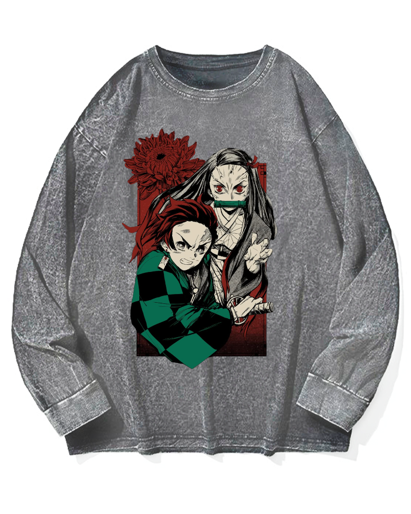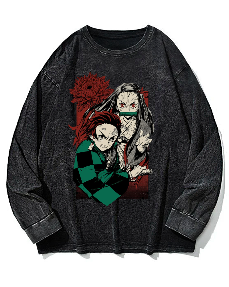 Tanjiro and Nezuko Vintage Washed Sweatshirts