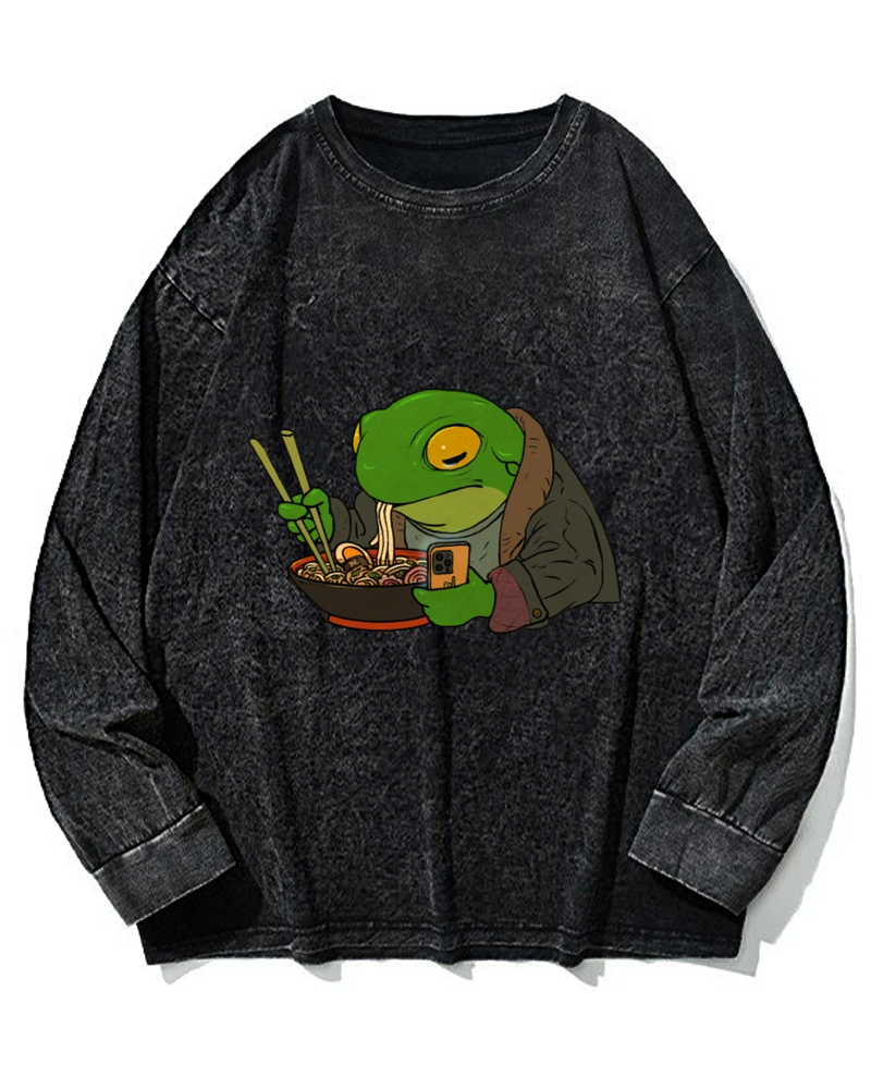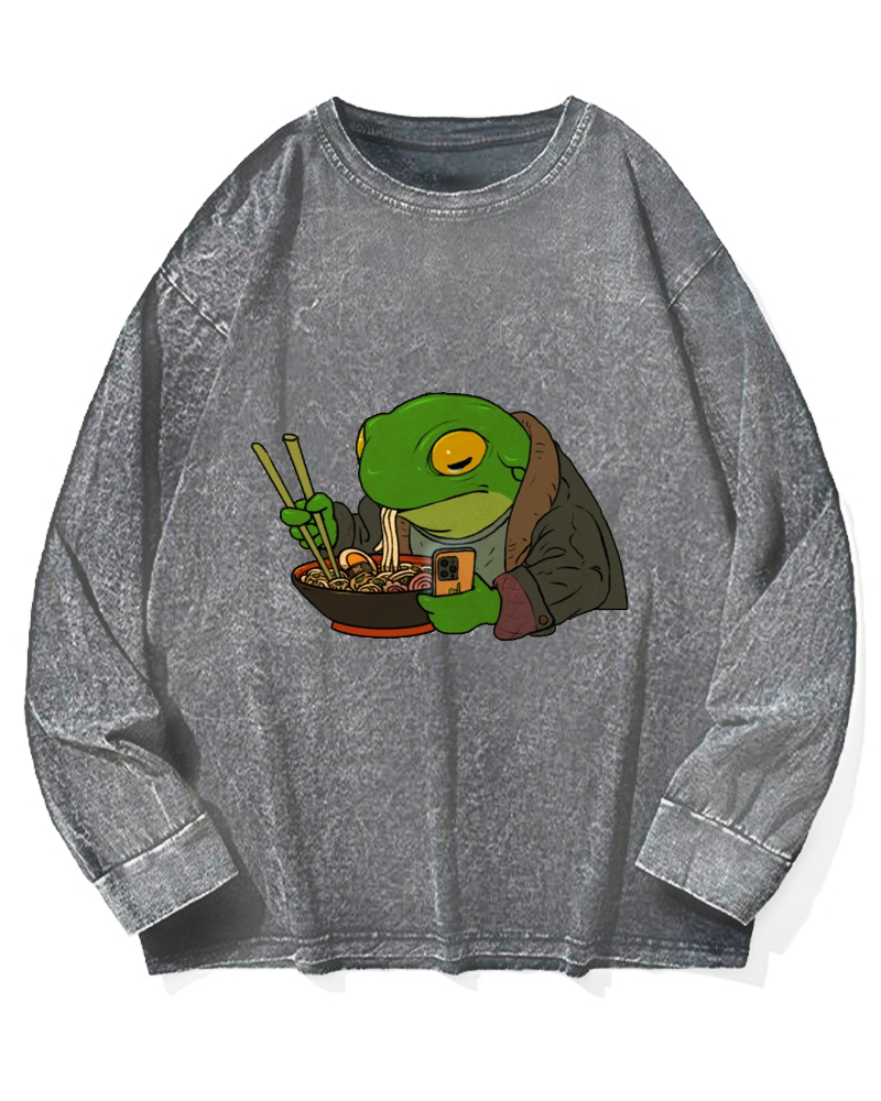 "No Thoughts,Head Empty" Frog Vintage Washed Sweatshirts