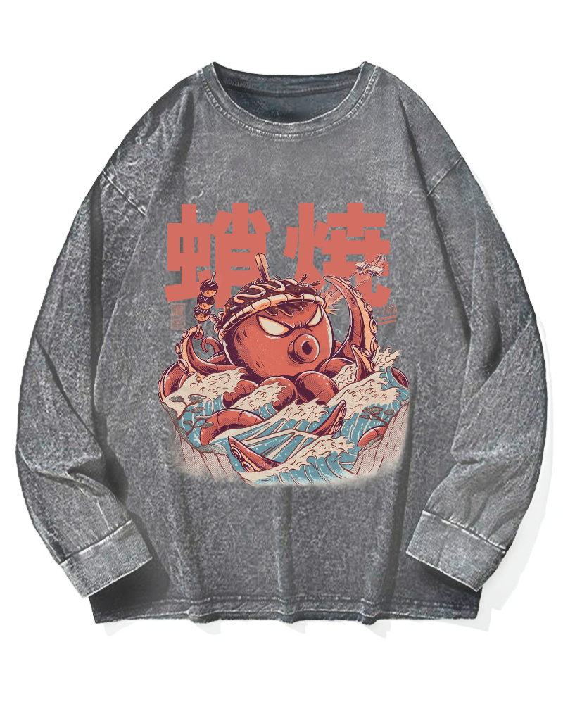 Takoyaki Octopus Monster Vintage Washed Sweatshirts