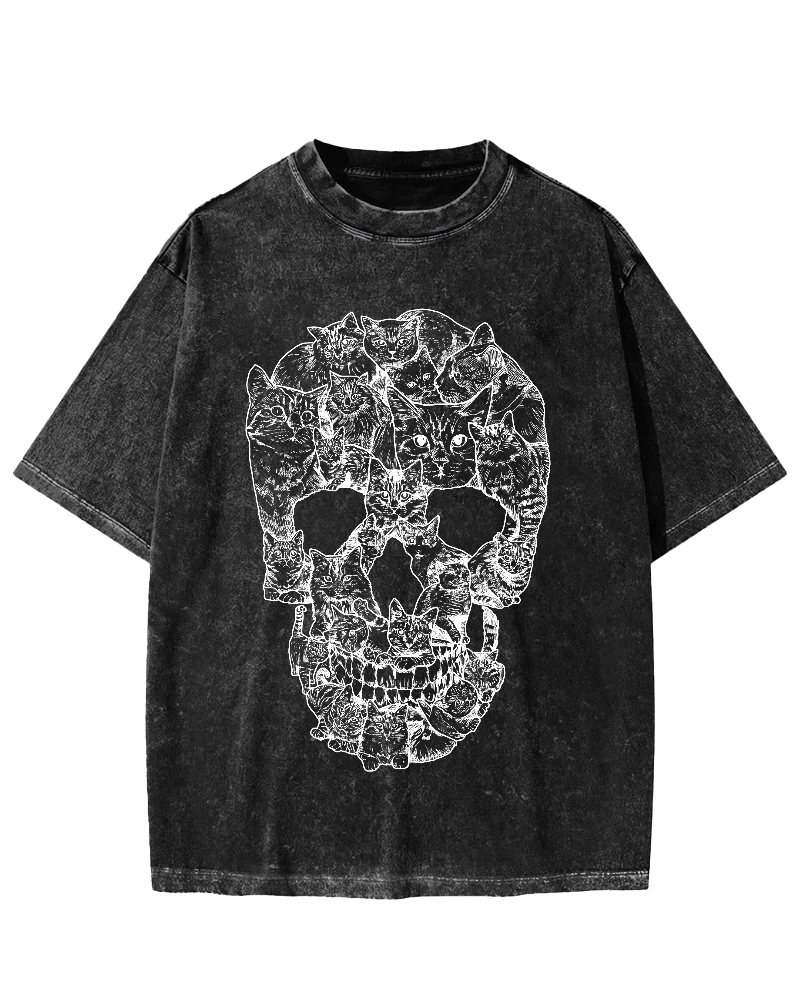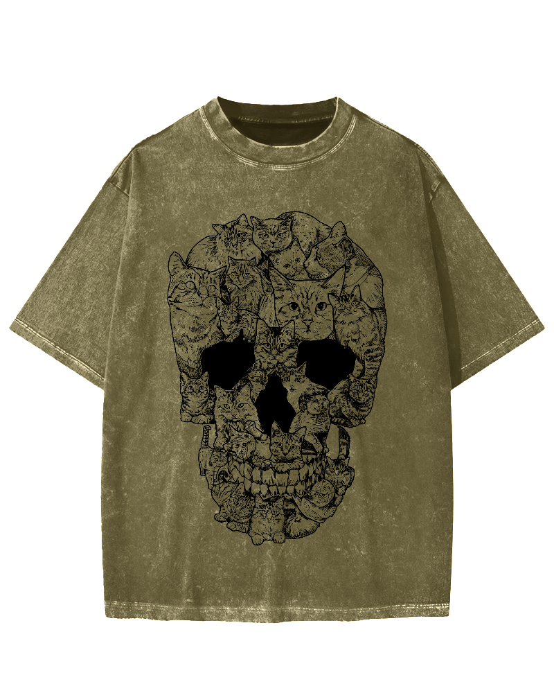 • Cat & Skull Vintage Washed T-shirt