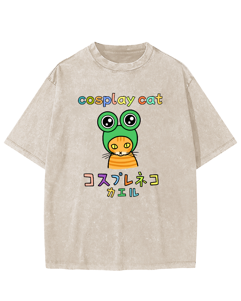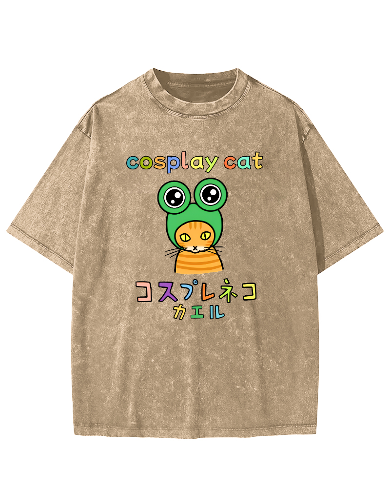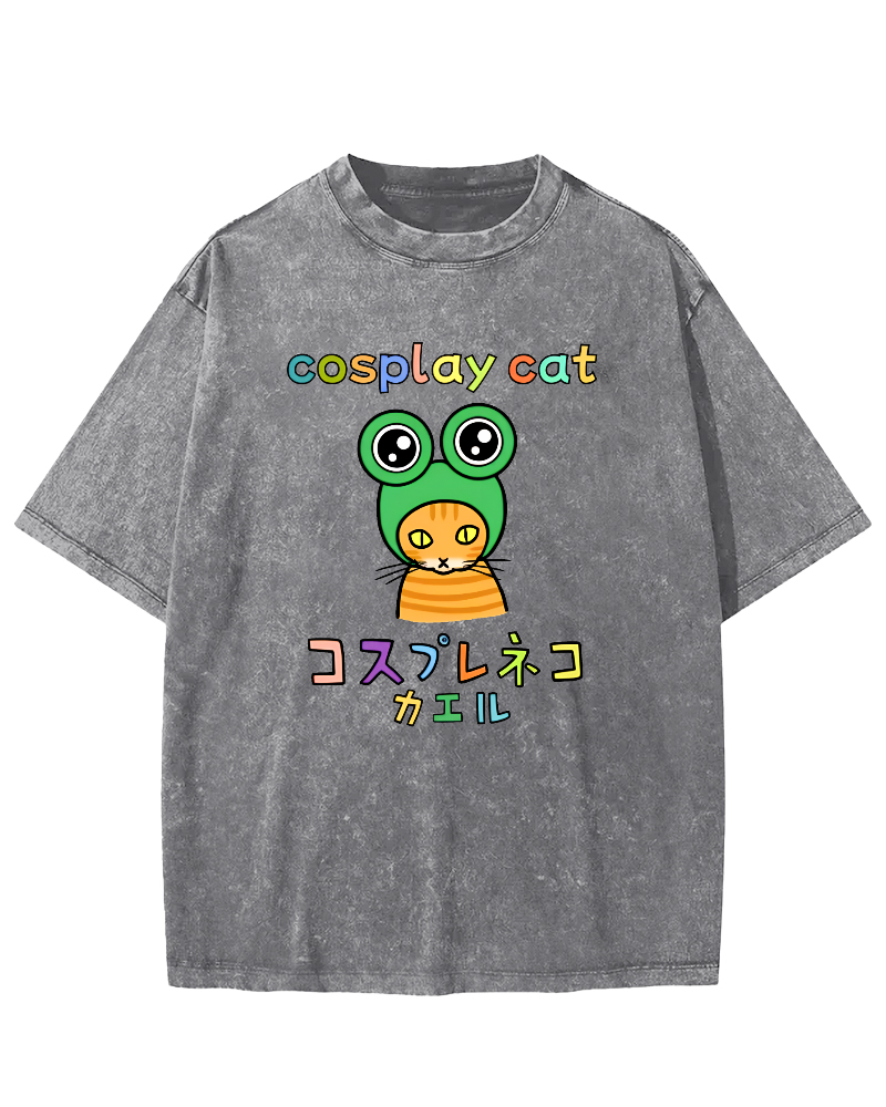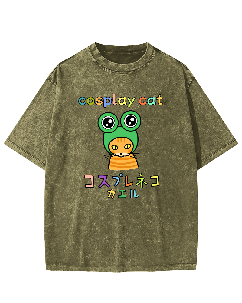 • Cosplay Cat: Neko Kaeru Frog Vintage Washed T-shirt