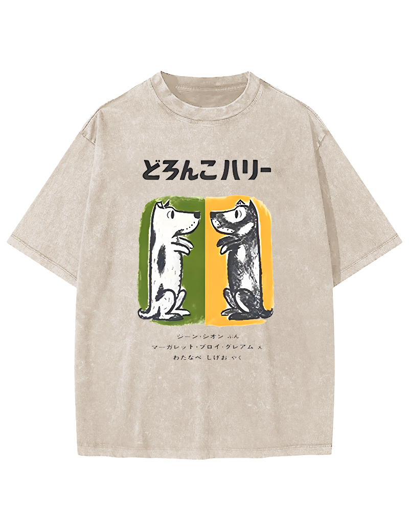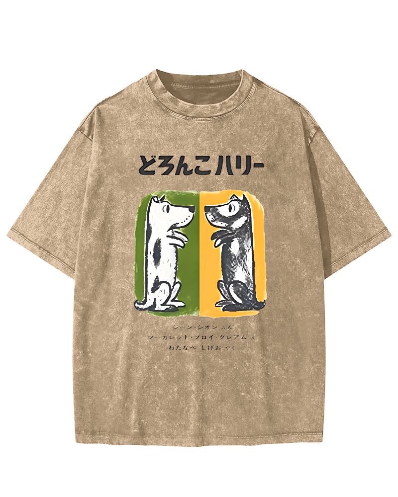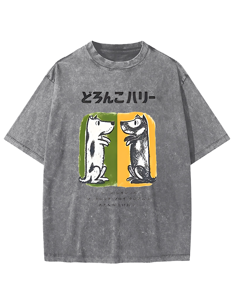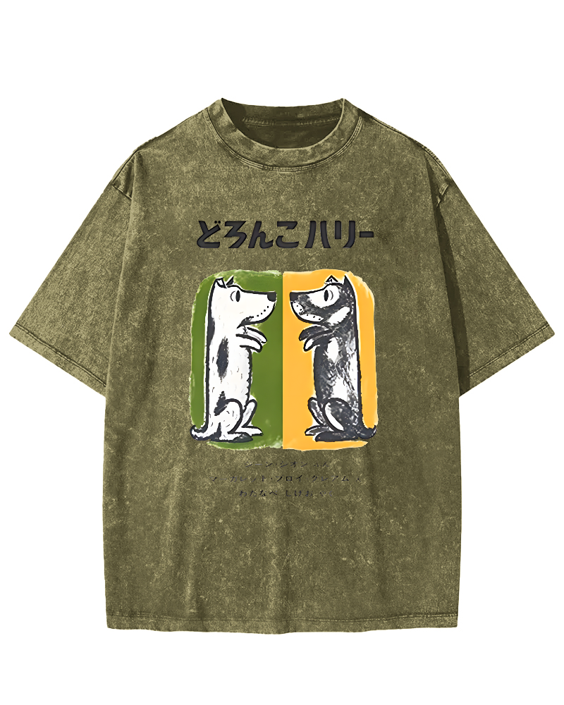 Cute Japanese style pet dog Vintage Washed T-shirt
