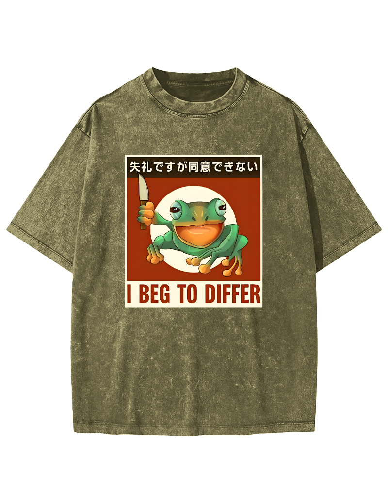 I Beg To Differ Frog Japanese Vintage Washed T-shirt