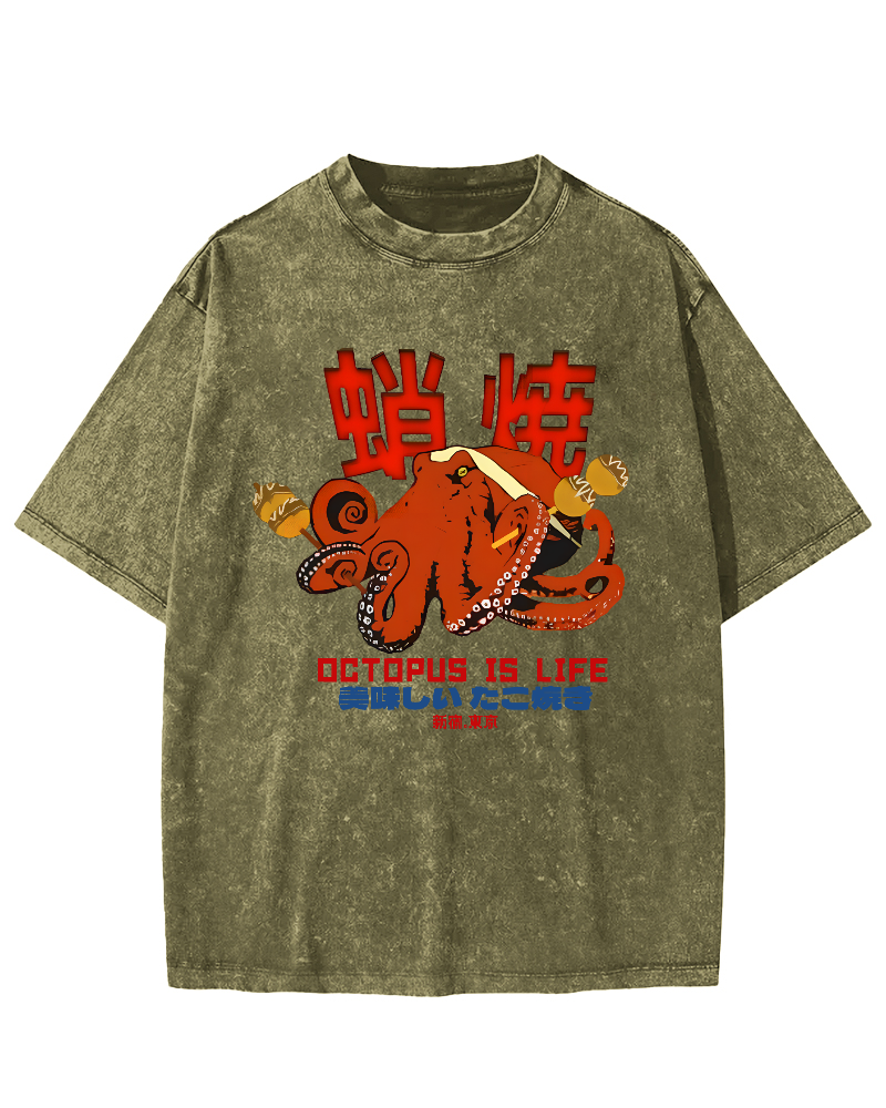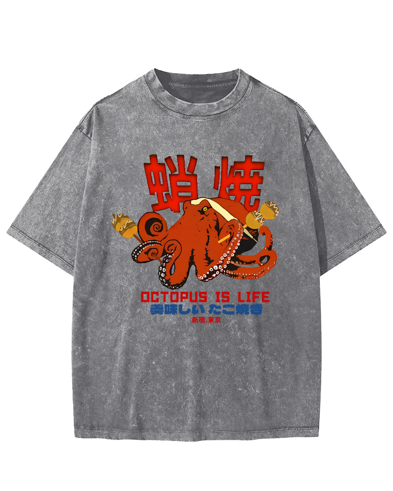 • Japanese Octopus BBQ Vintage Washed T-shirt