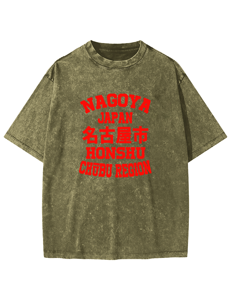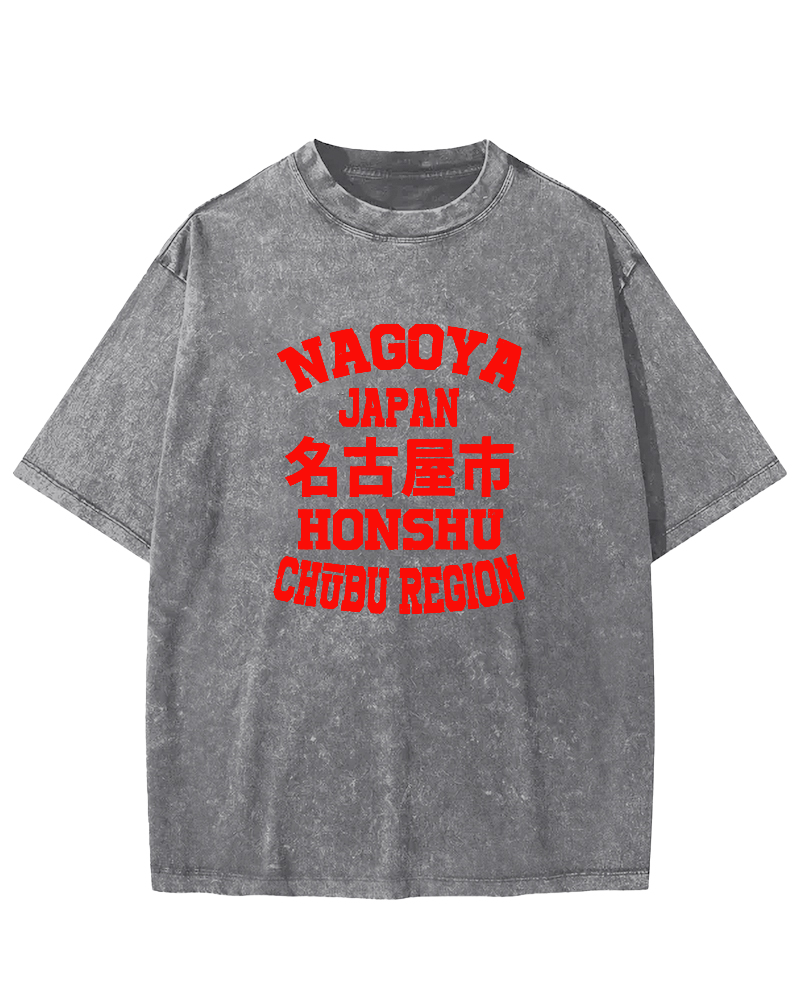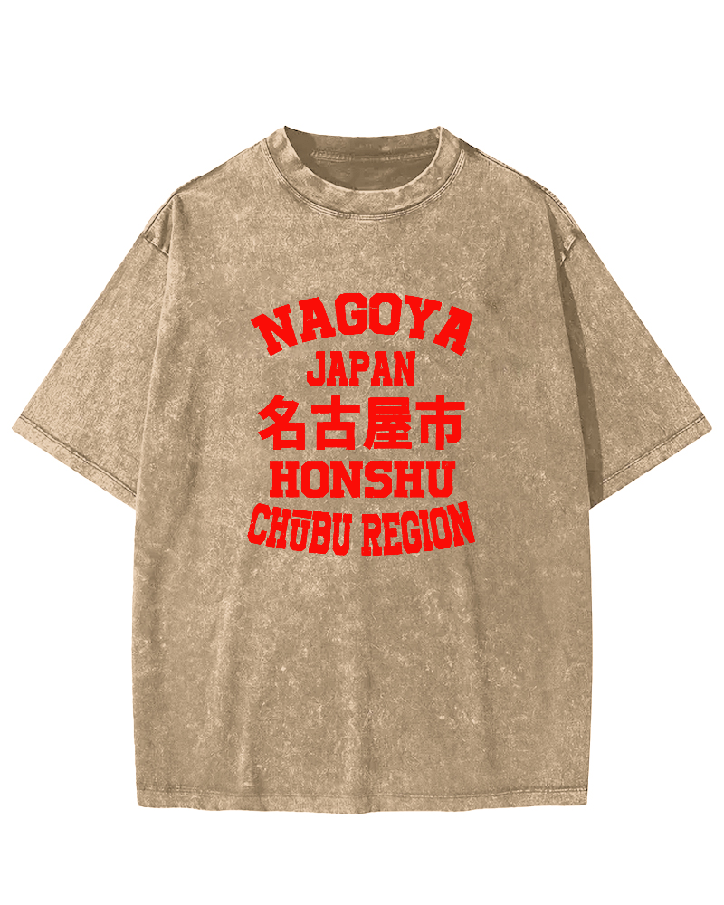 • Nagoya City Retro Chinese Characters Vintage Washed T-shirt