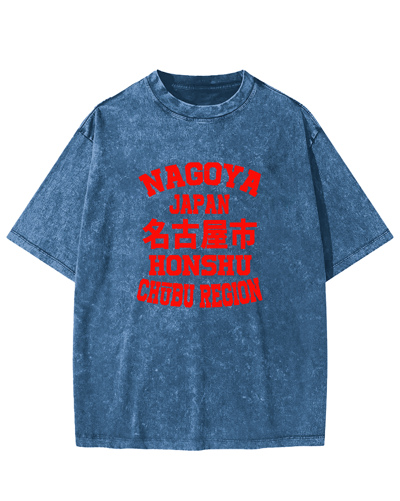 Nagoya City Retro Chinese Characters Vintage Washed T-shirt