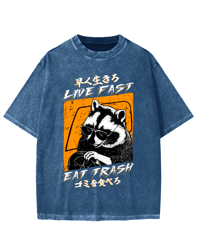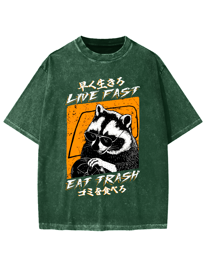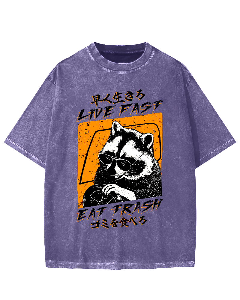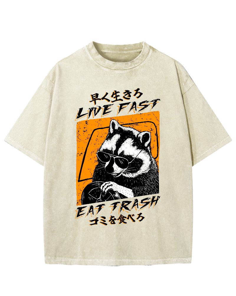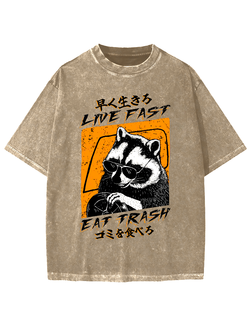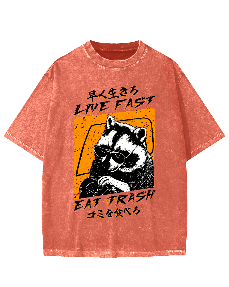 • Raccoon Live Fast Eat Trash Vintage Washed T-shirt
