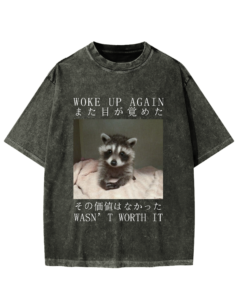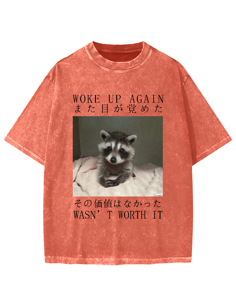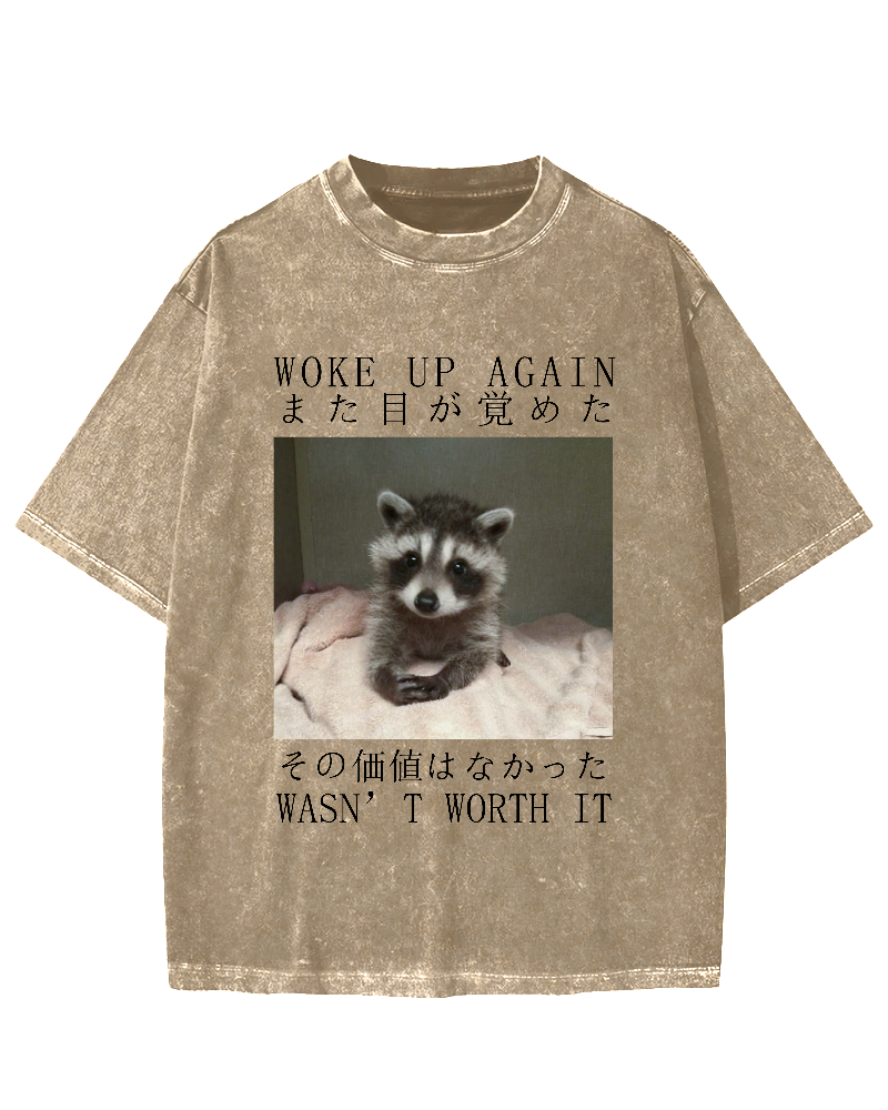 • Raccoon Woke Up Again Vintage Washed T-shirt