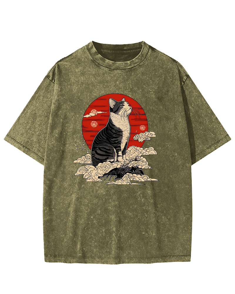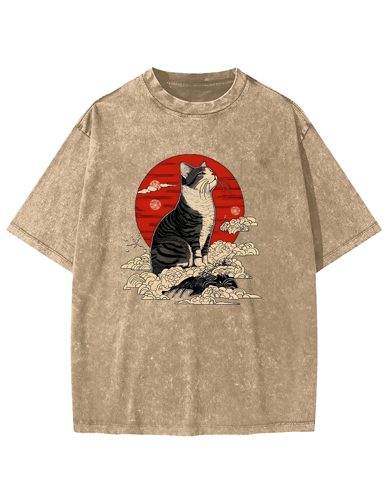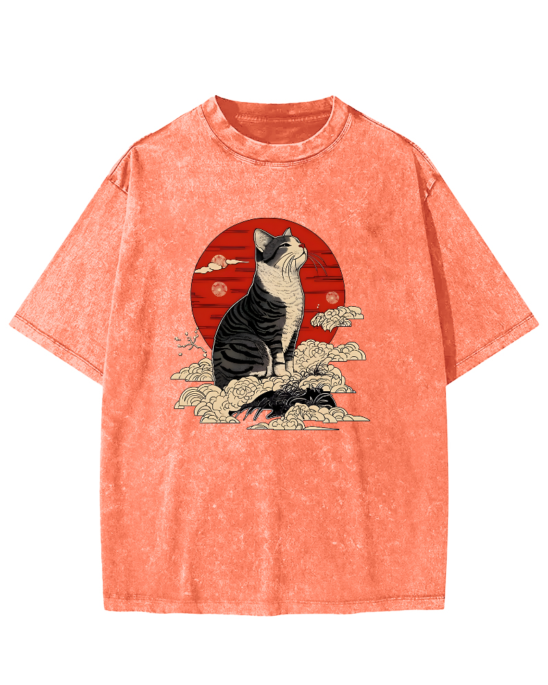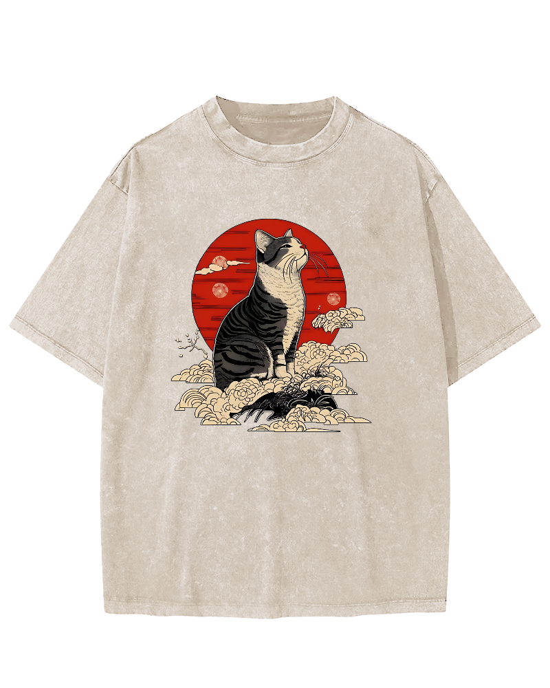 Retro Cat Japanese Art Vintage Washed T-shirt