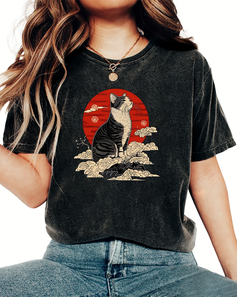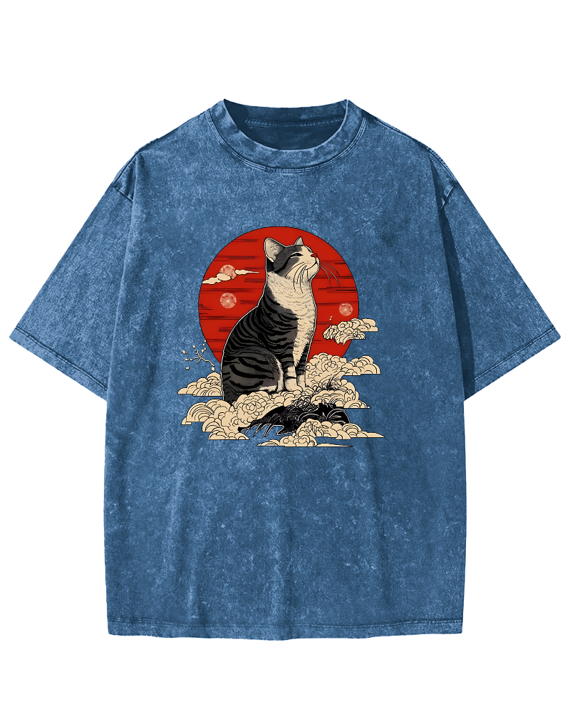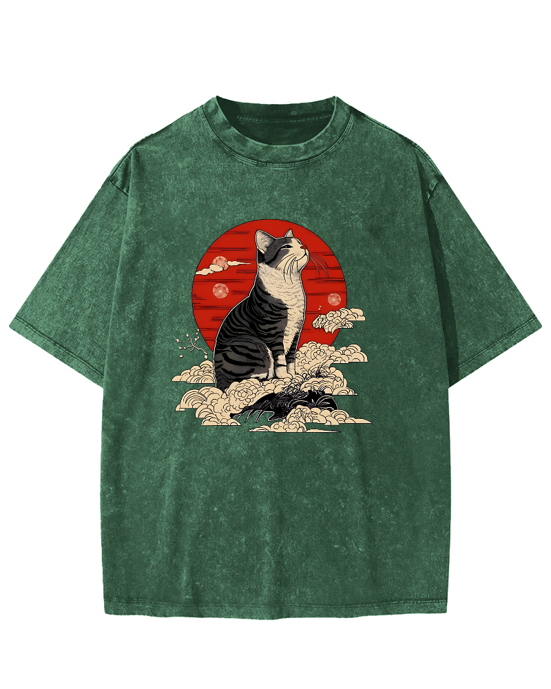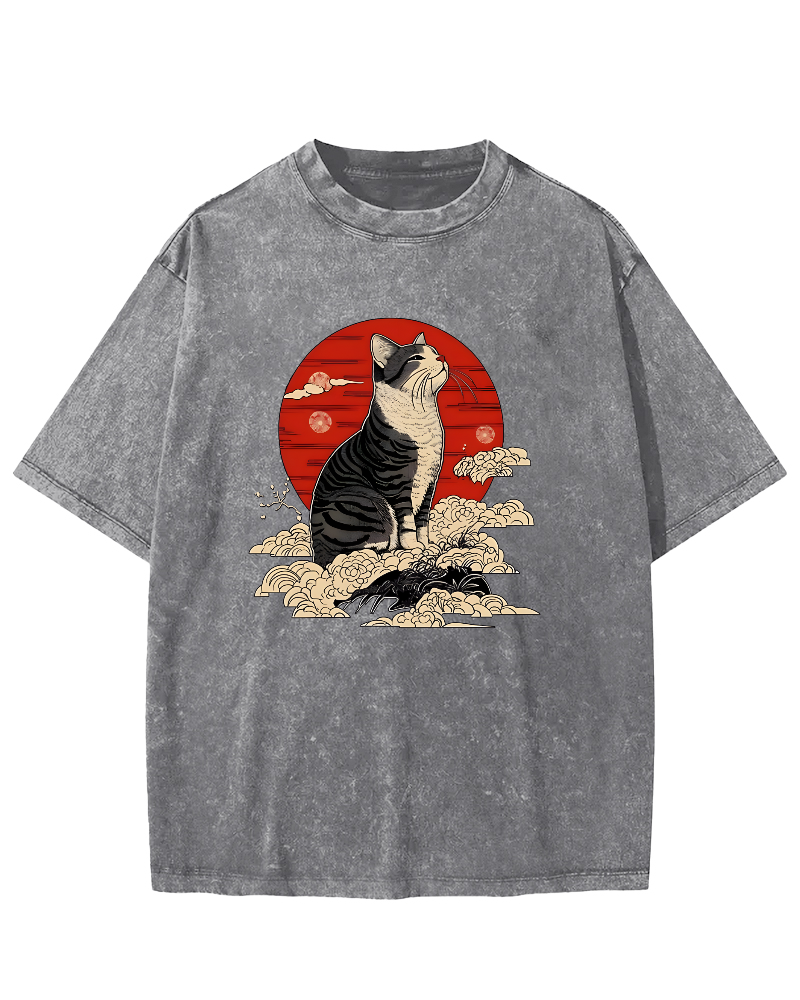 Retro Cat Japanese Art Vintage Washed T-shirt