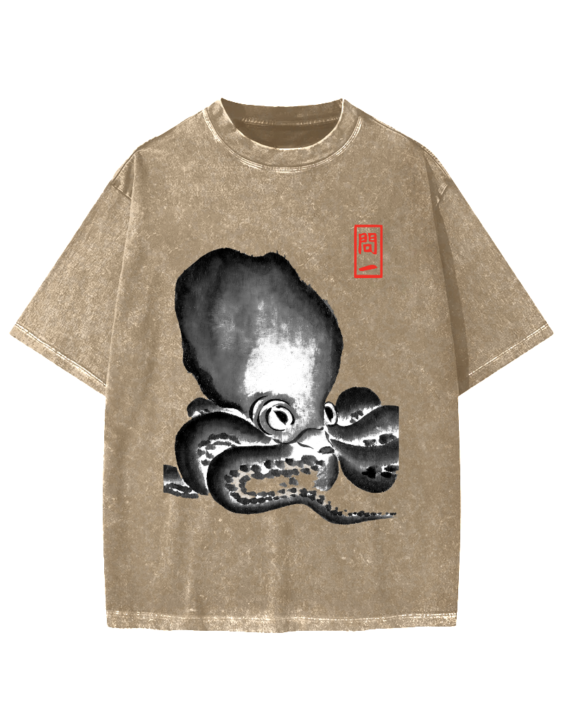 • Retro Octopus Vintage Washed T-shirt